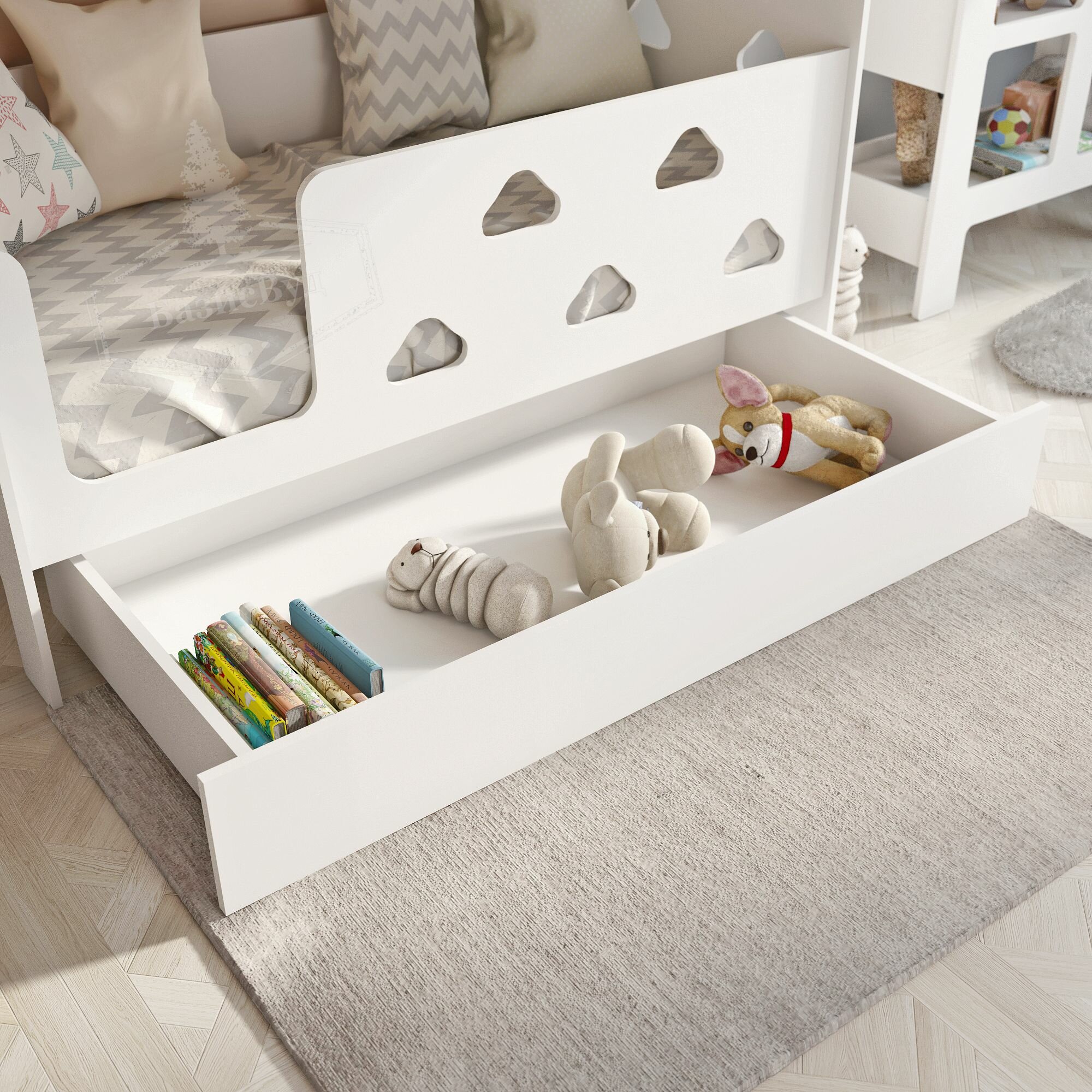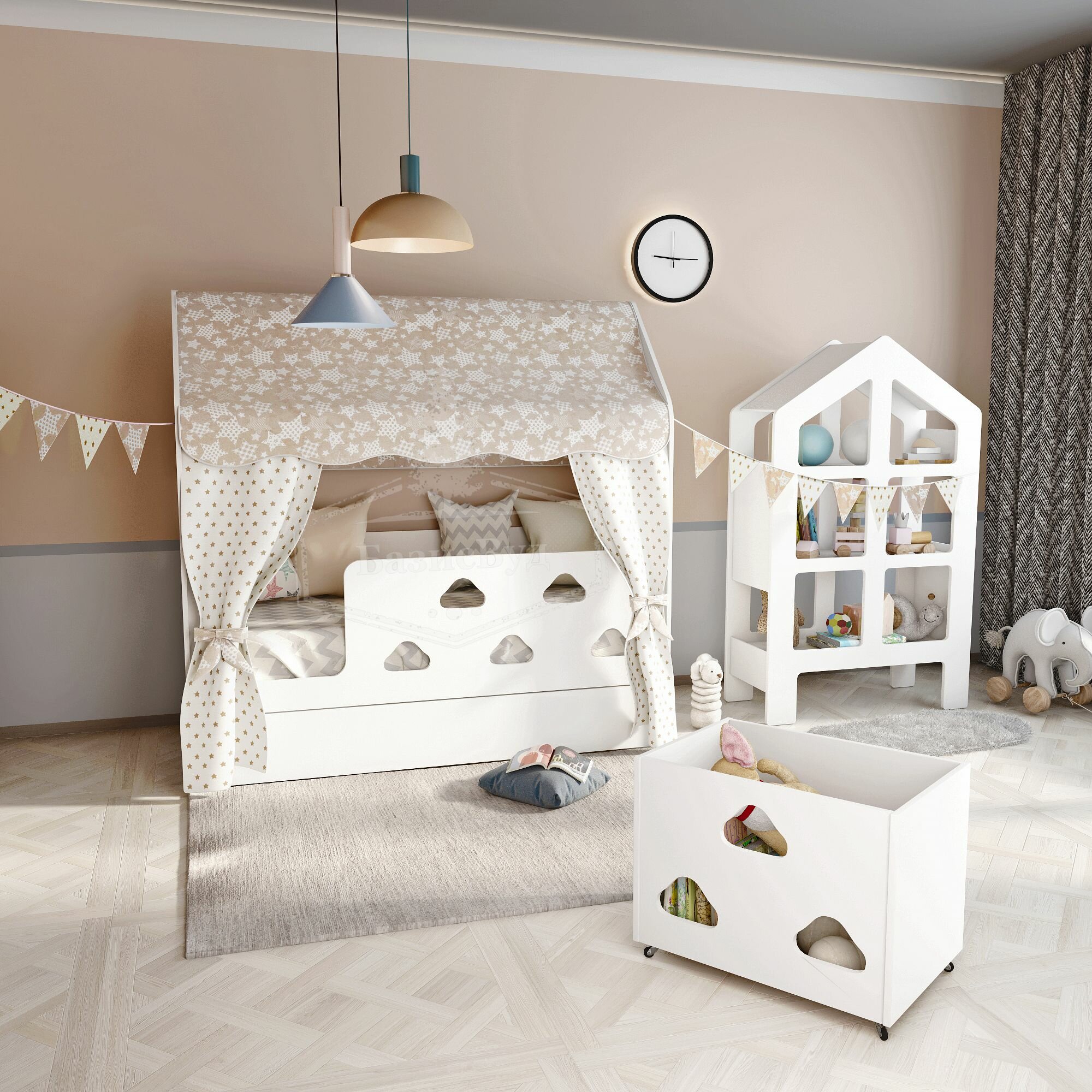СохранитьКровать детская домик с текстилем и ящиком (бежевый, со звездами, вход слева) "Облачка" интересное: