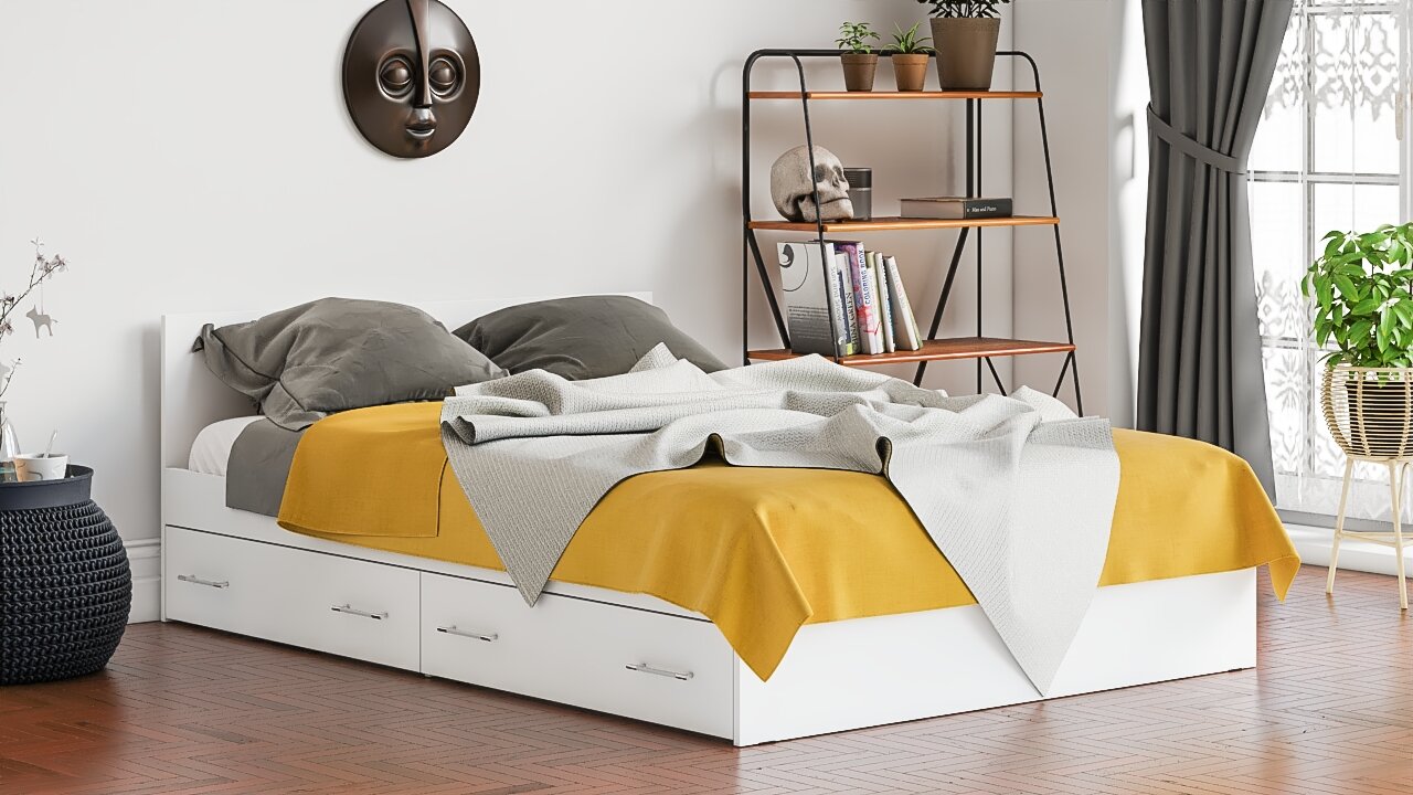Купить Кровать с ящиками Мори 1400 цвет белый, ШхГхВ 143,5х203,5х70 см, сп. м. 1400х2000 мм, без матраса, основание есть