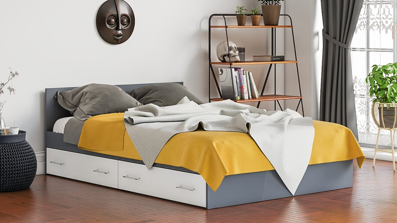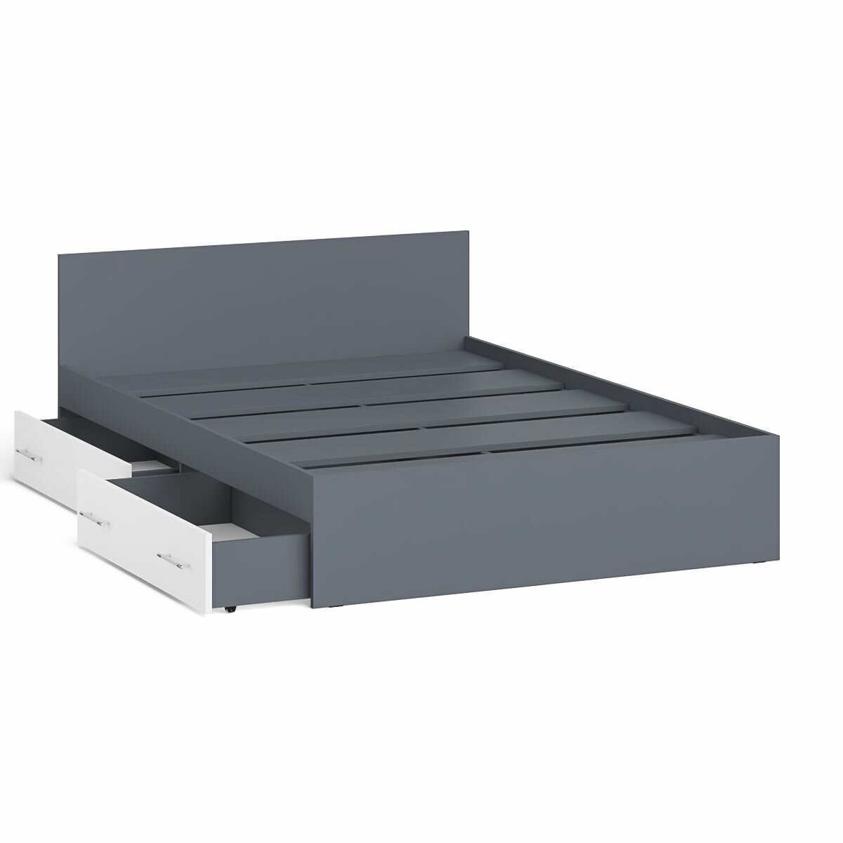 Купить Кровать с ящиками Мори 1400 цвет графит/белый, ШхГхВ 143,5х203,5х70 см, сп. м. 1400х2000 мм, без матраса, основание есть