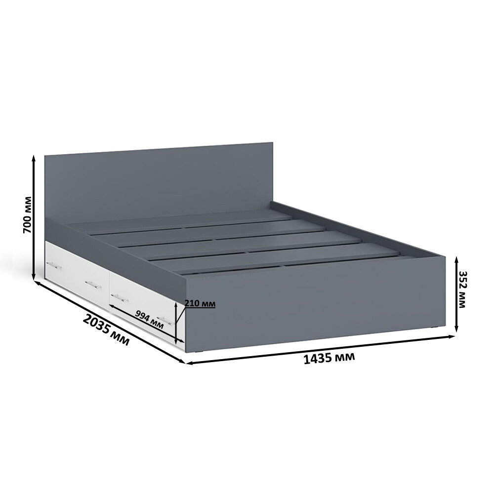СохранитьКровать с ящиками Мори 1400 цвет графит/белый, ШхГхВ 143,5х203,5х70 см, сп. м. 1400х2000 мм, без матраса, основание есть интересное: