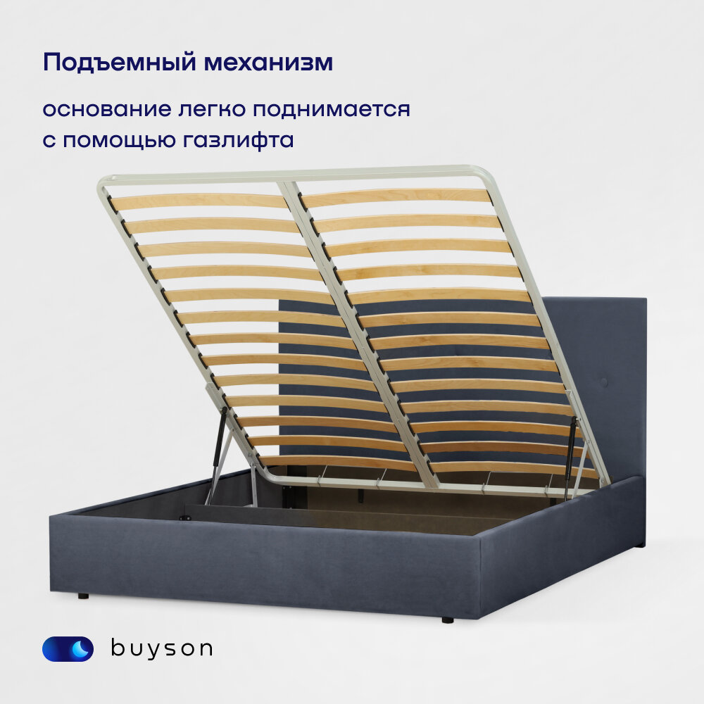 СохранитьДвуспальная кровать buyson BuyRelax 200х180 с подъемным механизмом, серо-синий, микровелюр интересное: