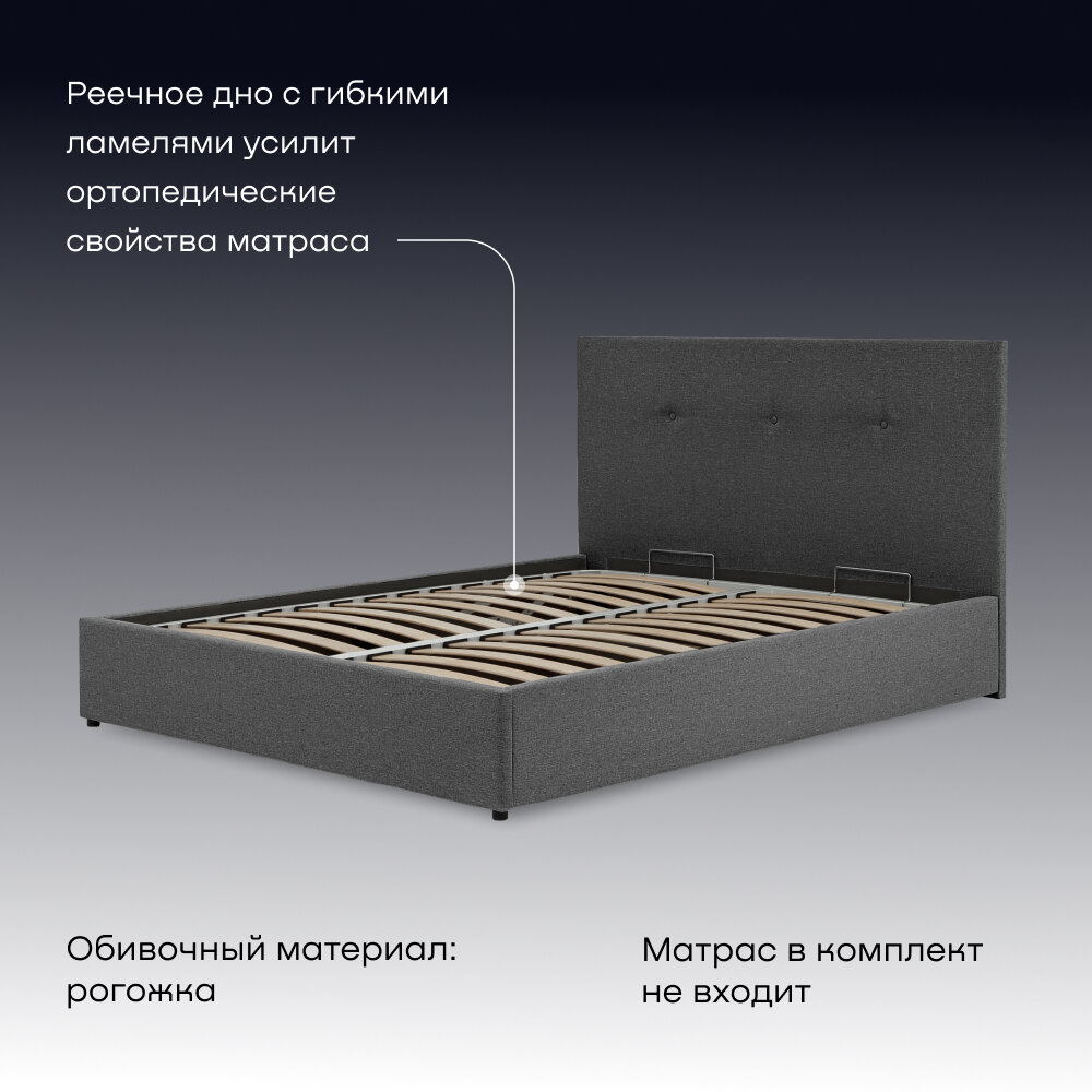 Двуспальная кровать buyson BuyRelax 200х140 с подъемным механизмом, серая рогожка