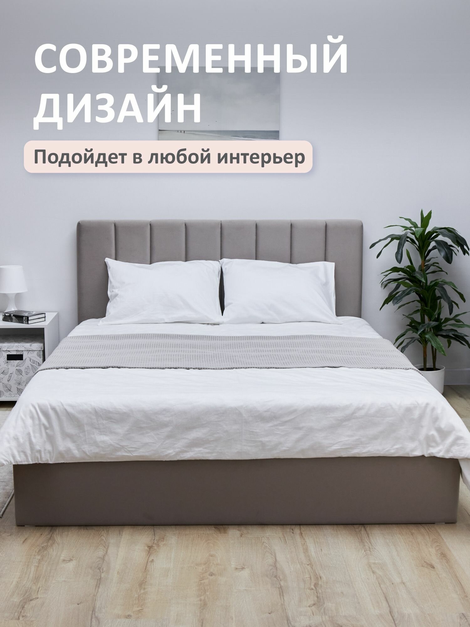Кровать двуспальная 160x200 Romack Andrea Серый пух с подъемным механизмом, ящиком для хранения