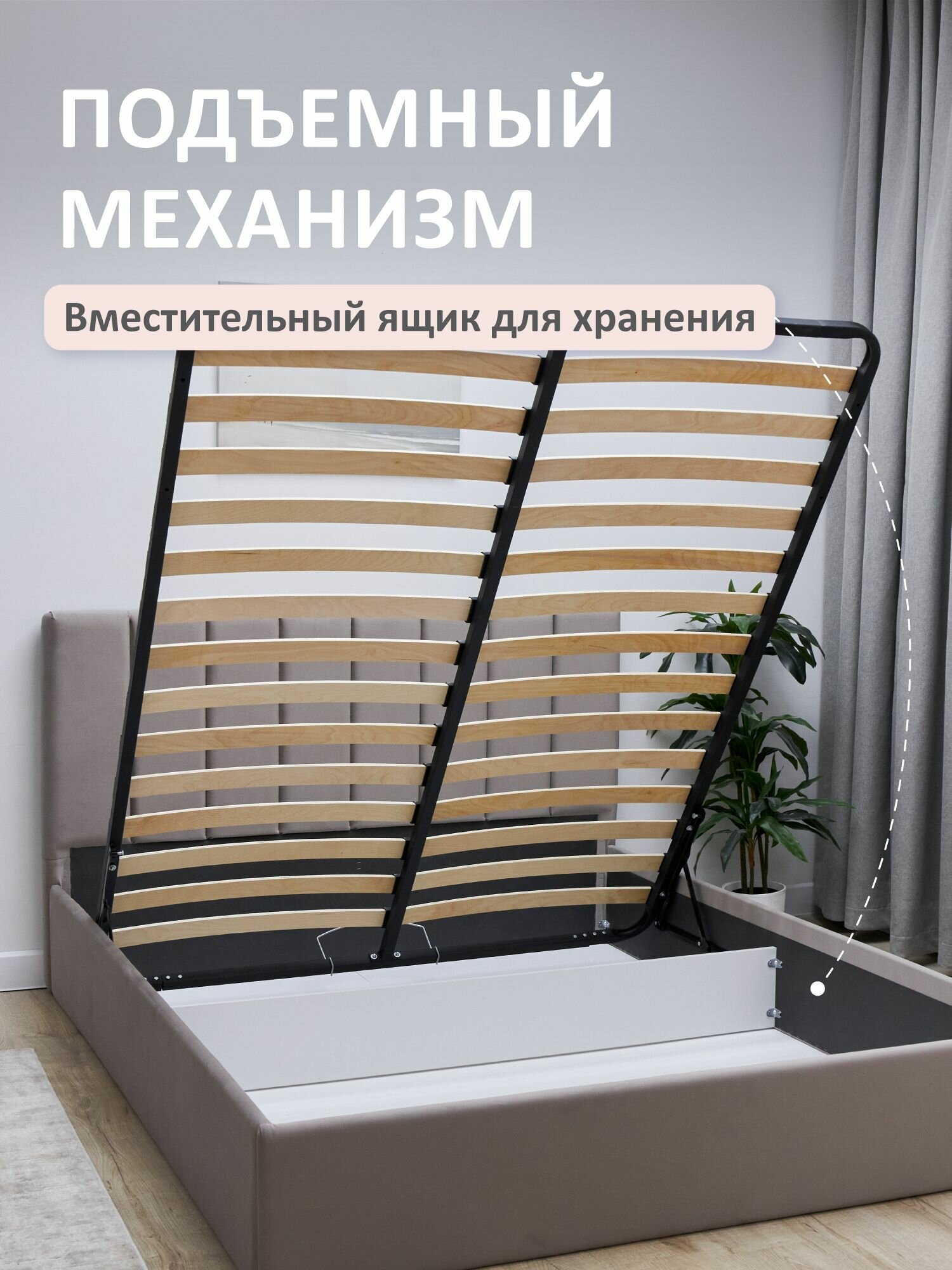 Кровать двуспальная 140x200 Romack Andrea Светло-бежевый с подъемным механизмом, ящиком для хранения