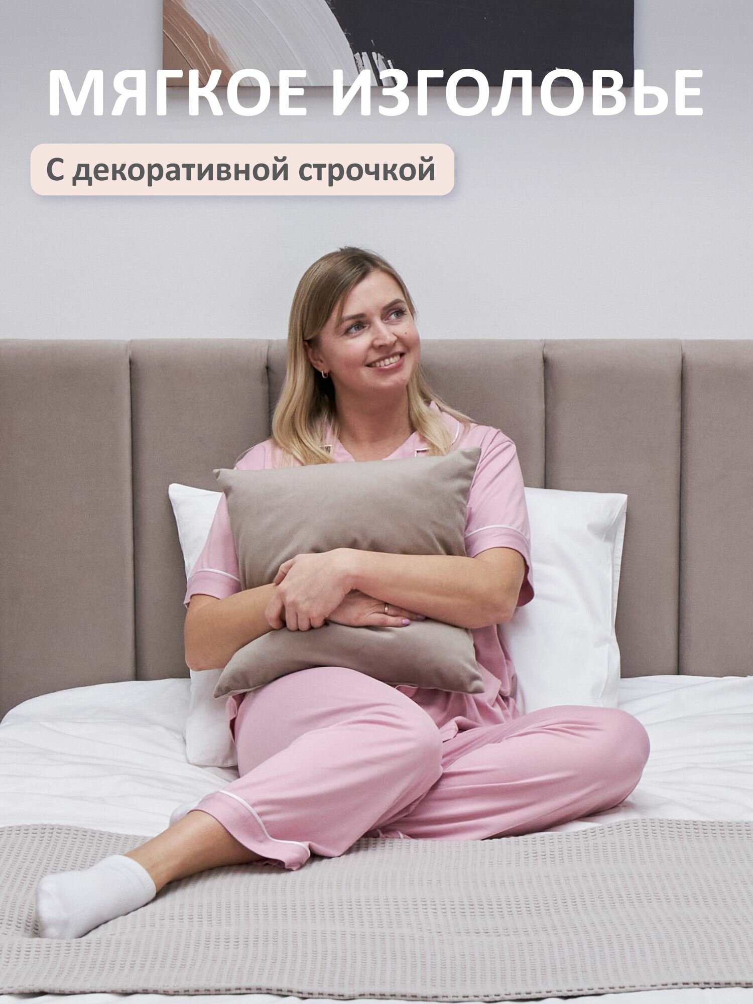Кровать двуспальная 180x200 Romack Andrea Светло-бежевый с подъемным механизмом, ящиком для хранения