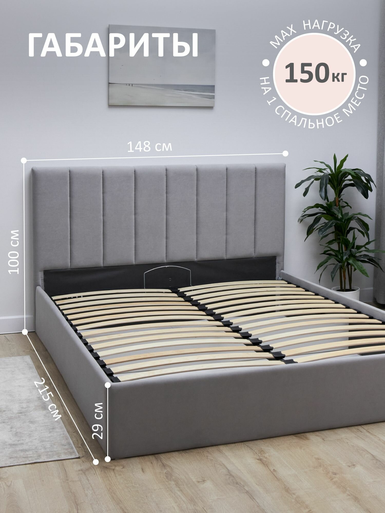 СохранитьКровать двуспальная 140x200 Romack Andrea Серый пух с подъемным механизмом, ящиком для хранения интересное: