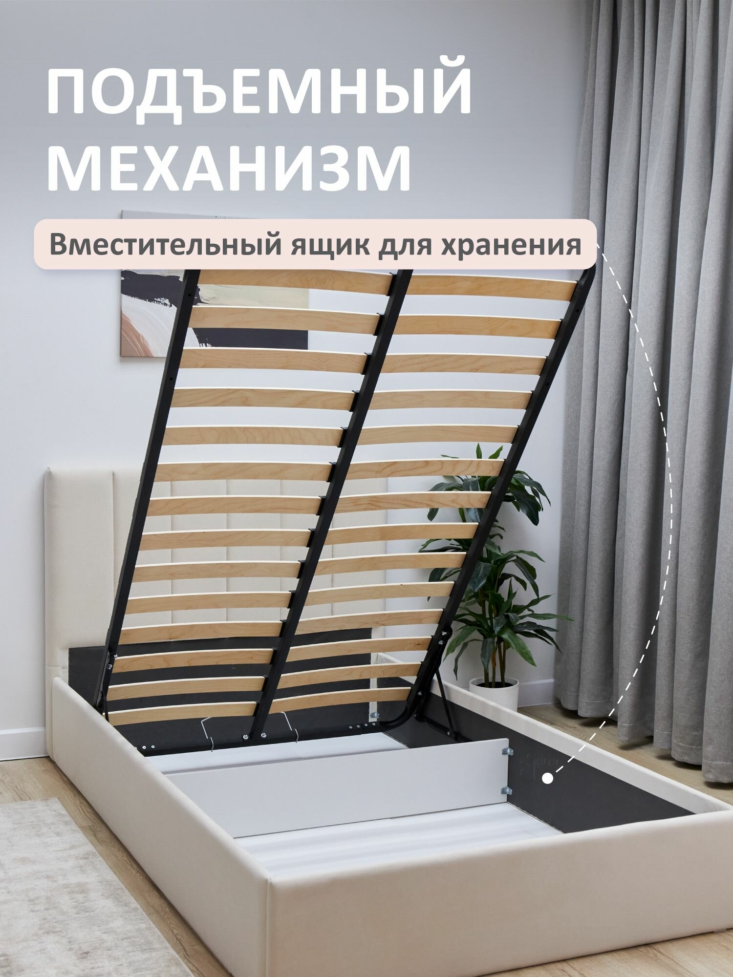 Кровать двуспальная 140x200 Romack Andrea Светло-бежевый с подъемным механизмом, ящиком для хранения