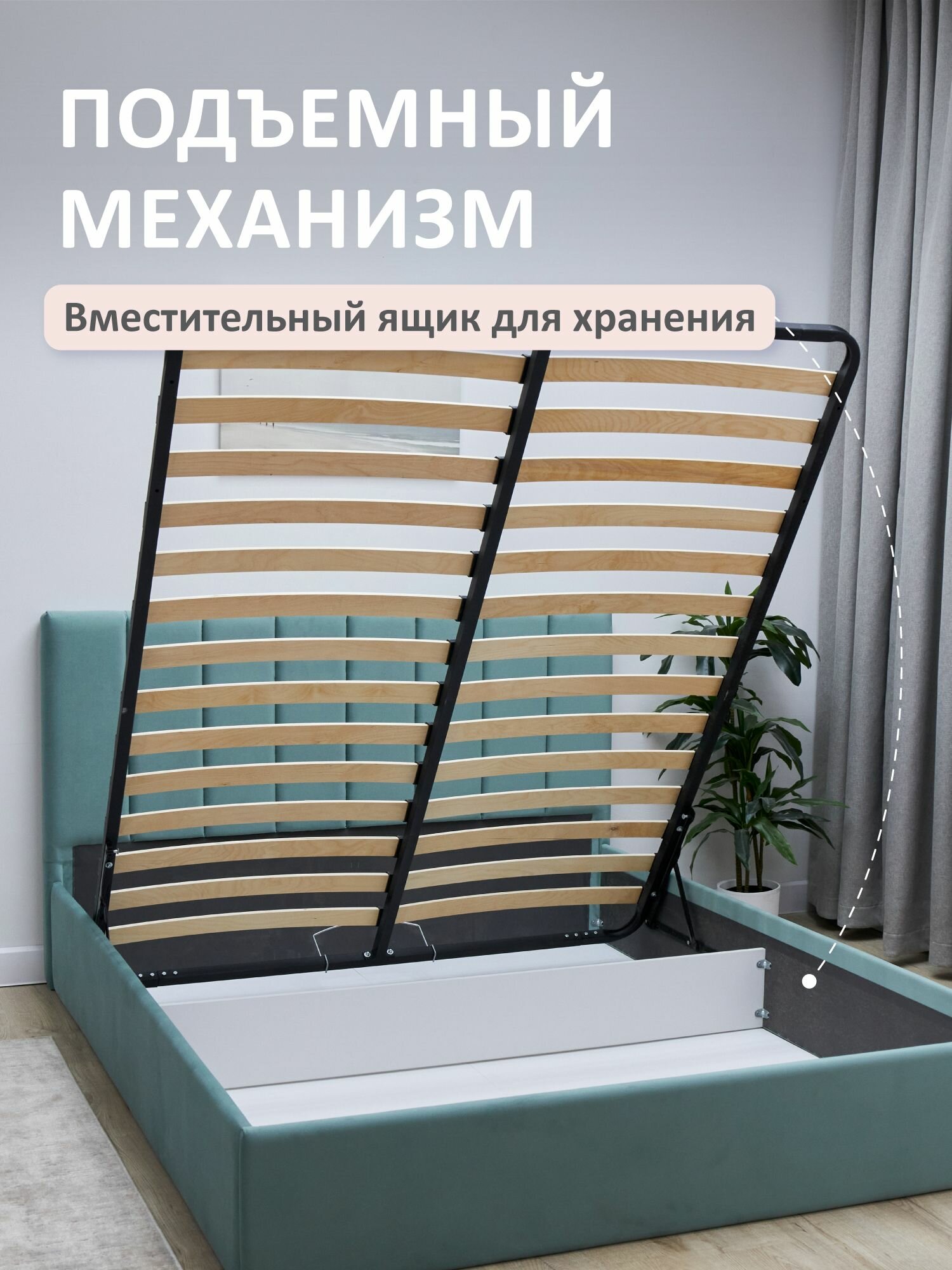 Кровать двуспальная 140x200 Romack Andrea Мята с подъемным механизмом, ящиком для хранения