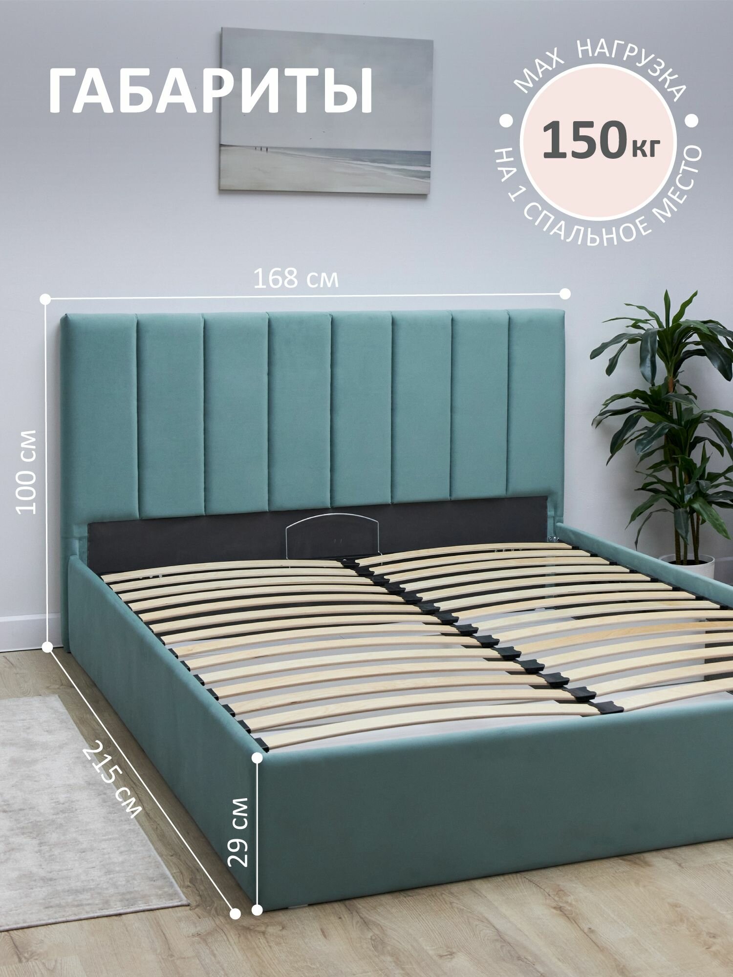 Кровать двуспальная 120x200 Romack Andrea Мята с подъемным механизмом, ящиком для хранения