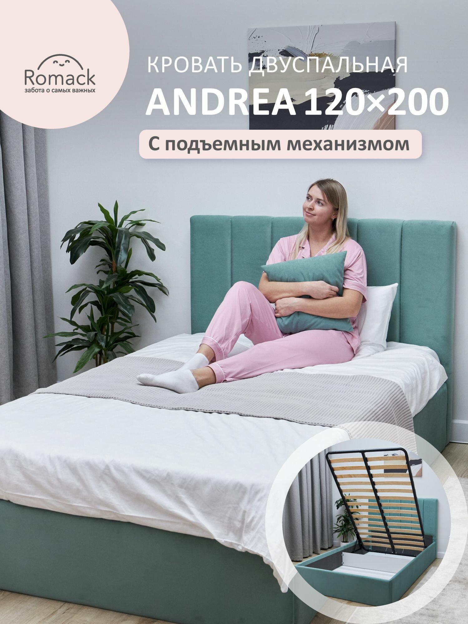 Купить Кровать двуспальная 120x200 Romack Andrea Мята с подъемным механизмом, ящиком для хранения