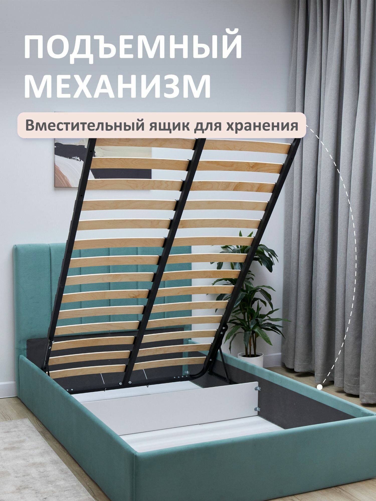Кровать двуспальная 140x200 Romack Andrea Мята с подъемным механизмом, ящиком для хранения