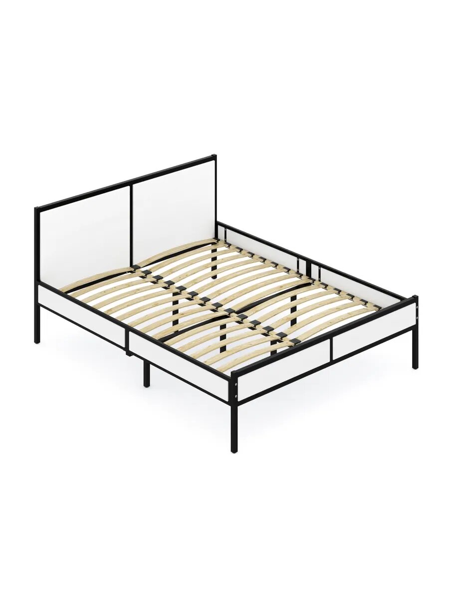 Кровать двуспальная Лофт с ортопедическим основанием, цвет белый с черным металлическим каркасом, 180х200 см