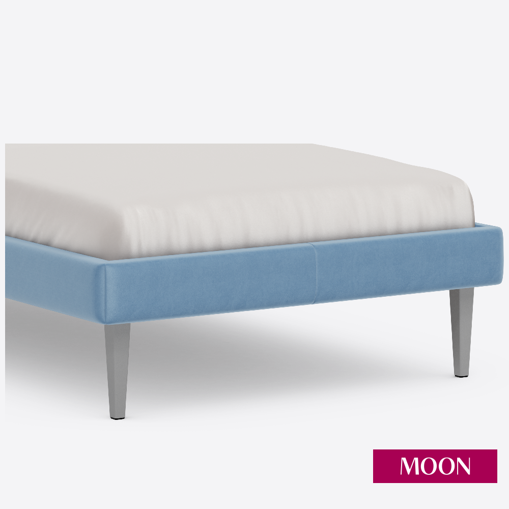 Кровать двуспальная без подъемного механизма на ножках, MOON FAMILY 1256, размер 180х200 см, велюр голубой. Ортопедическое основание в комплекте