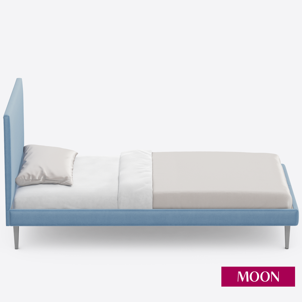 Кровать двуспальная без подъемного механизма на ножках, MOON FAMILY 1256, размер 140х200 см, велюр голубой. Ортопедическое основание в комплекте