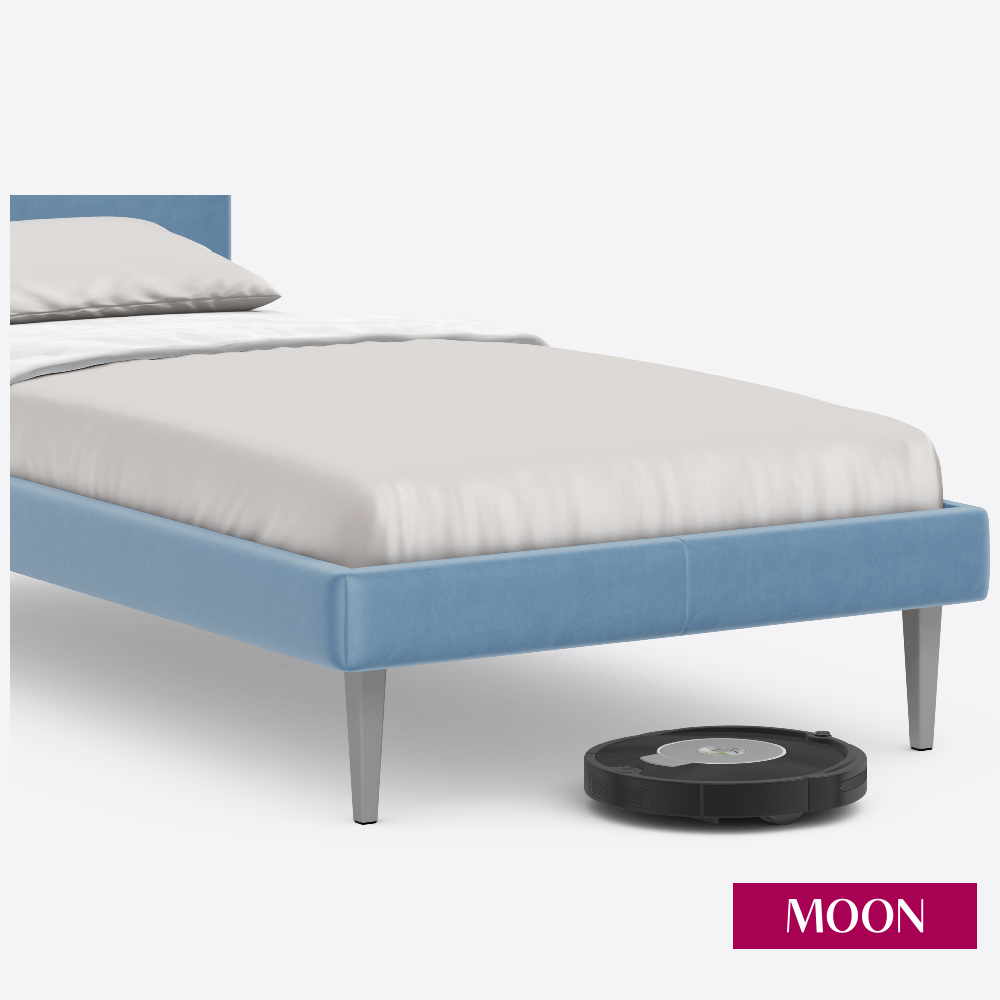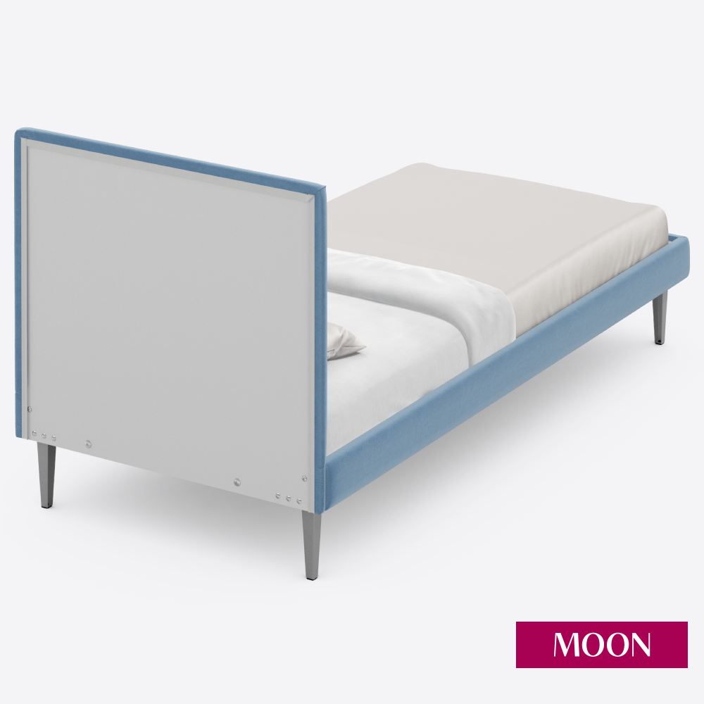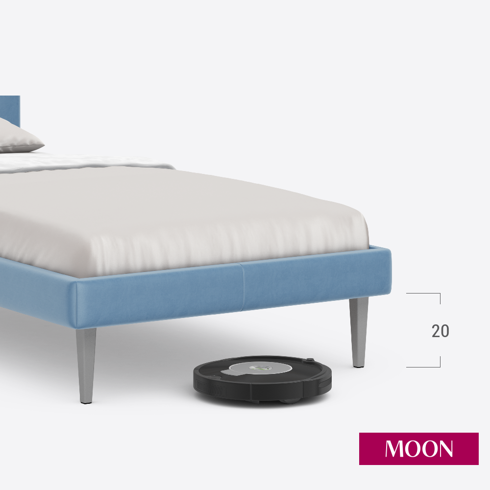 СохранитьКровать односпальная без подъемного механизма на ножках, MOON FAMILY 1256, размер 90х200 см, велюр голубой. Ортопедическое основание в комплекте интересное: