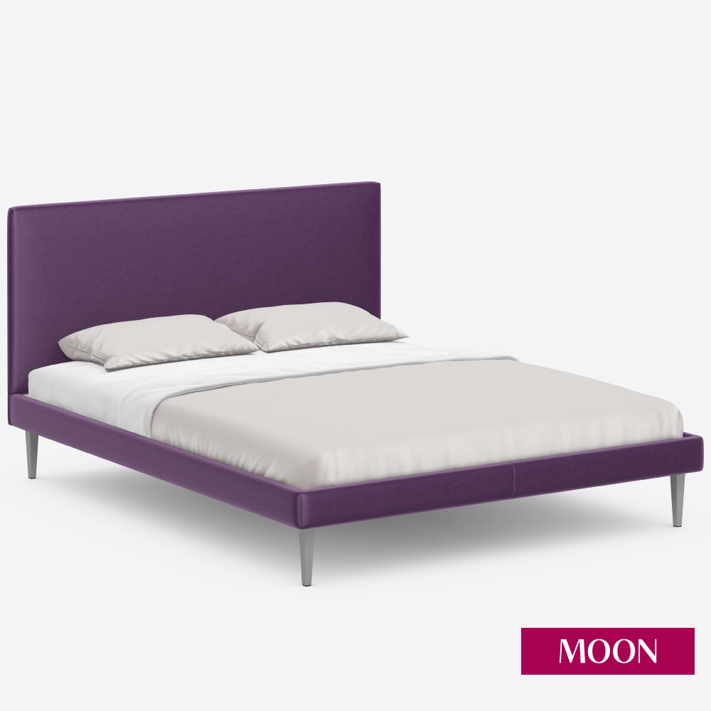 Кровать двуспальная без подъемного механизма на ножках, MOON FAMILY 1256, размер 140х200 см, велюр фиолетовый. Ортопедическое основание в комплекте
