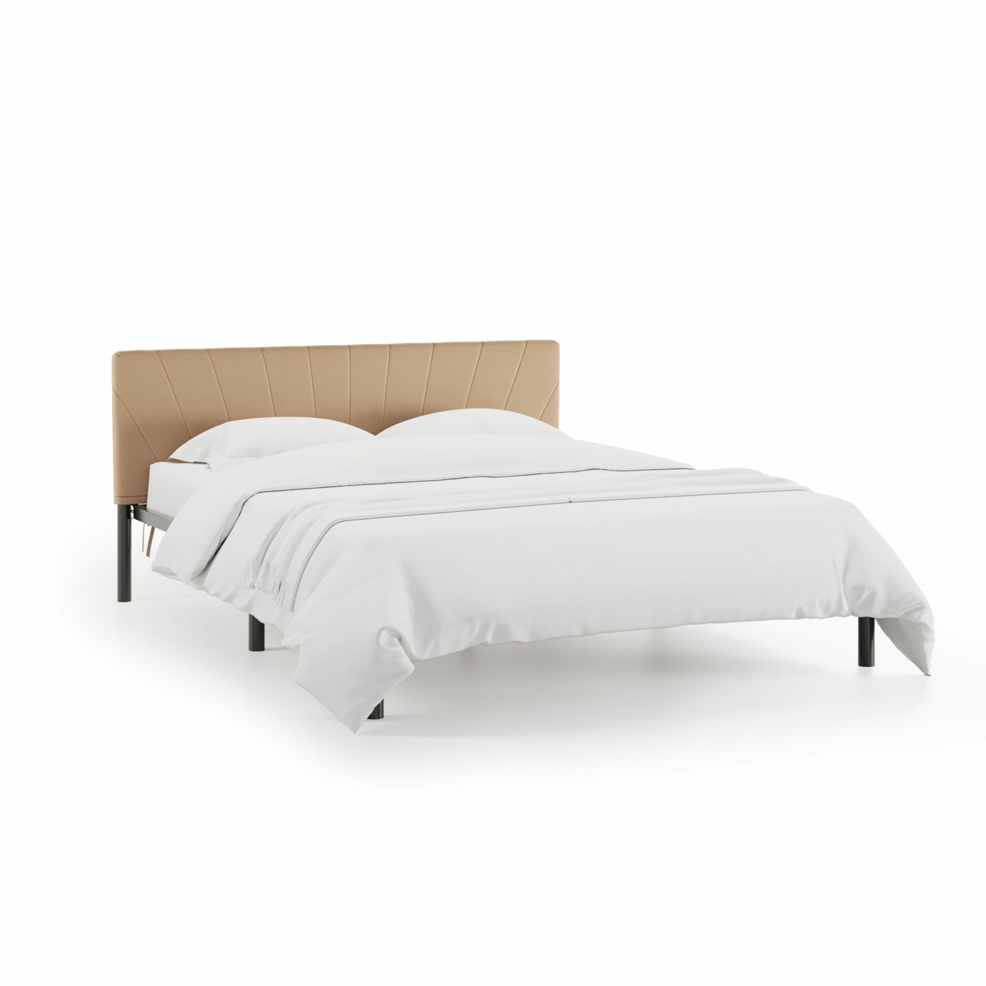 Купить Кровать "Сена блэк", 160х200 см, велюр Velutto бежевый, черный каркас, DreamLite