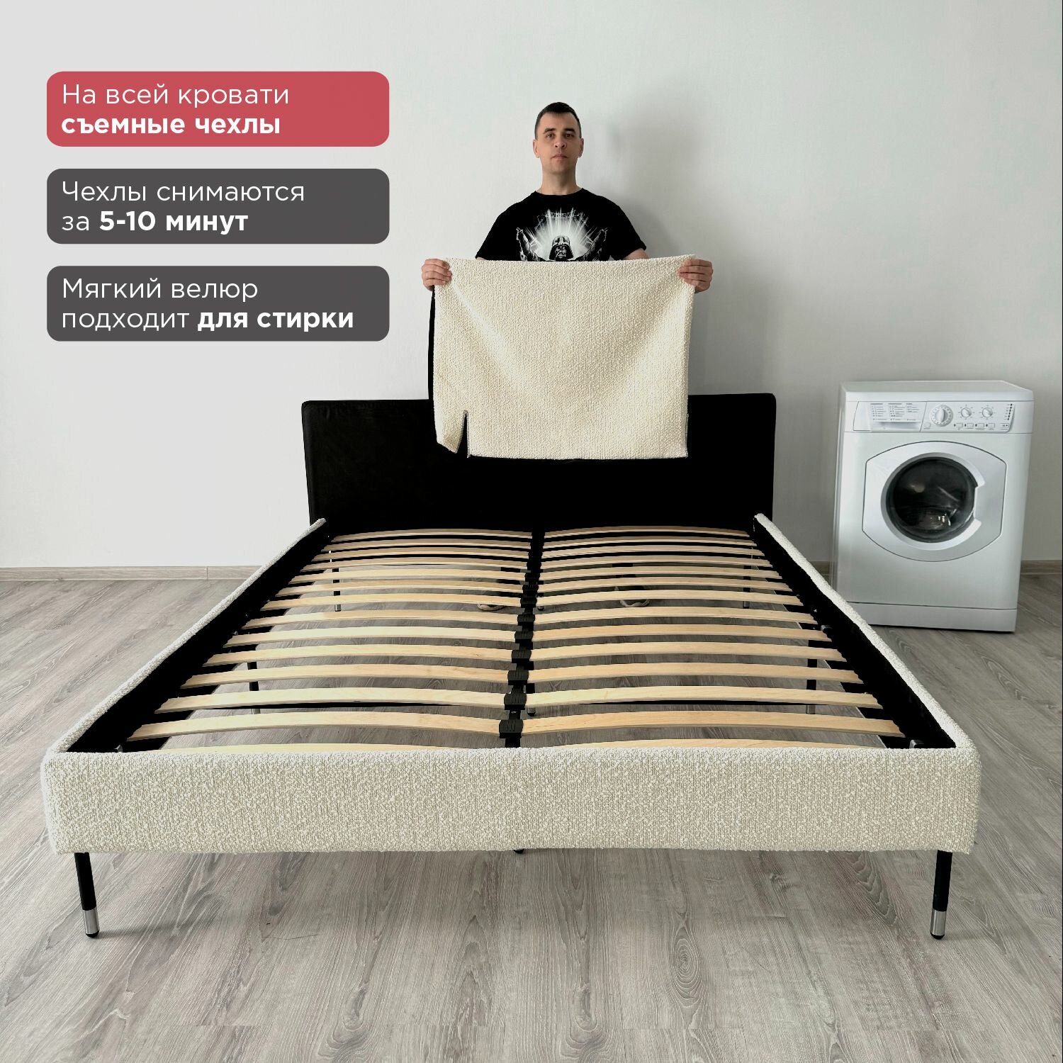 Кровать Redsofa Сити Букле Латте/ ножки хром 140х200 с ортопедическим основанием