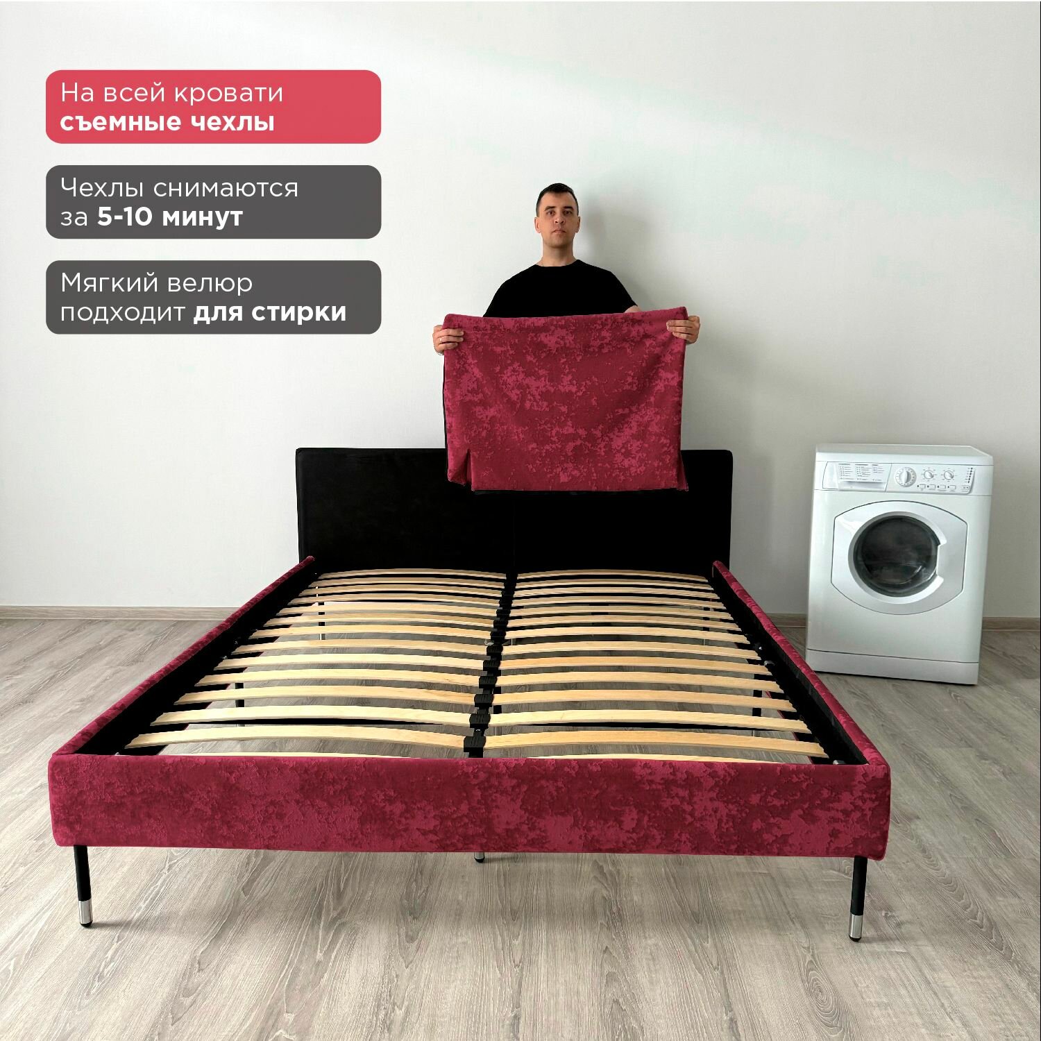 Кровать Redsofa Сити бургунди Ocean / ножки хром 140х200 с ортопедическим основанием (Мебельный гарнитур бытового назначения)
