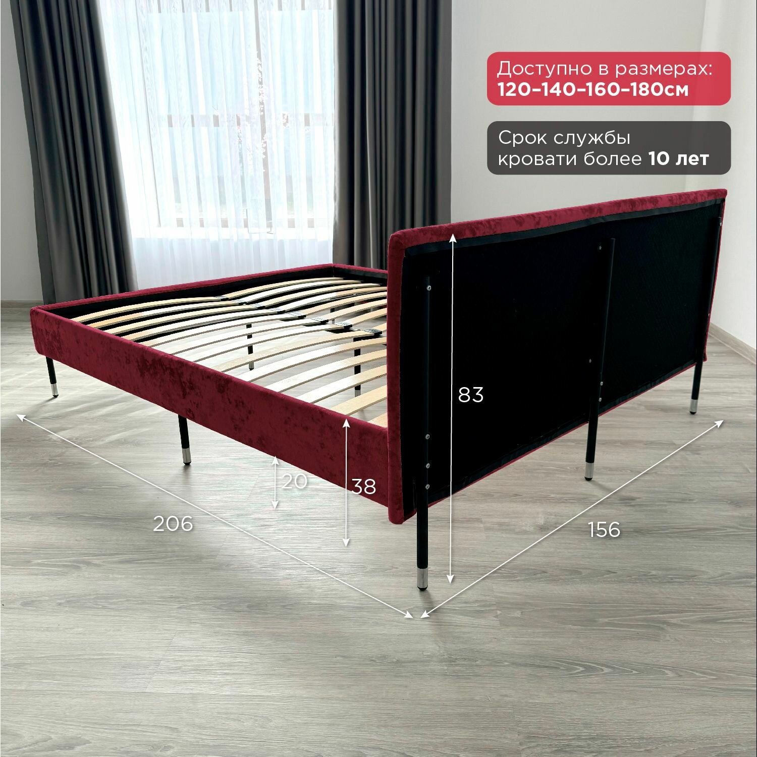 Кровать Redsofa Сити бургунди Ocean / ножки хром 160х200 с ортопедическим основанием (Мебельный гарнитур бытового назначения)