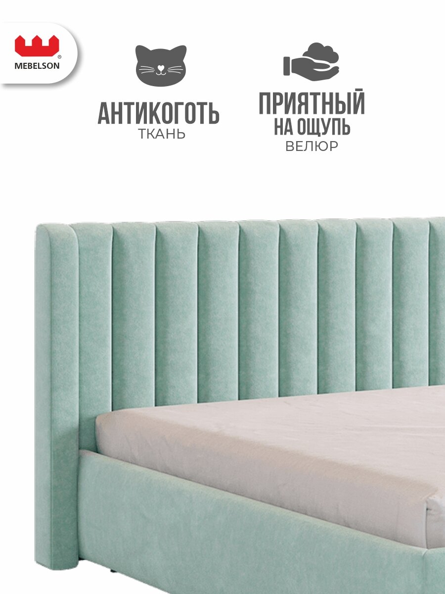 Кровать двуспальная "Ева" с основанием на опорах, 160х200 см, велюр Мята, Mebelson интересное: