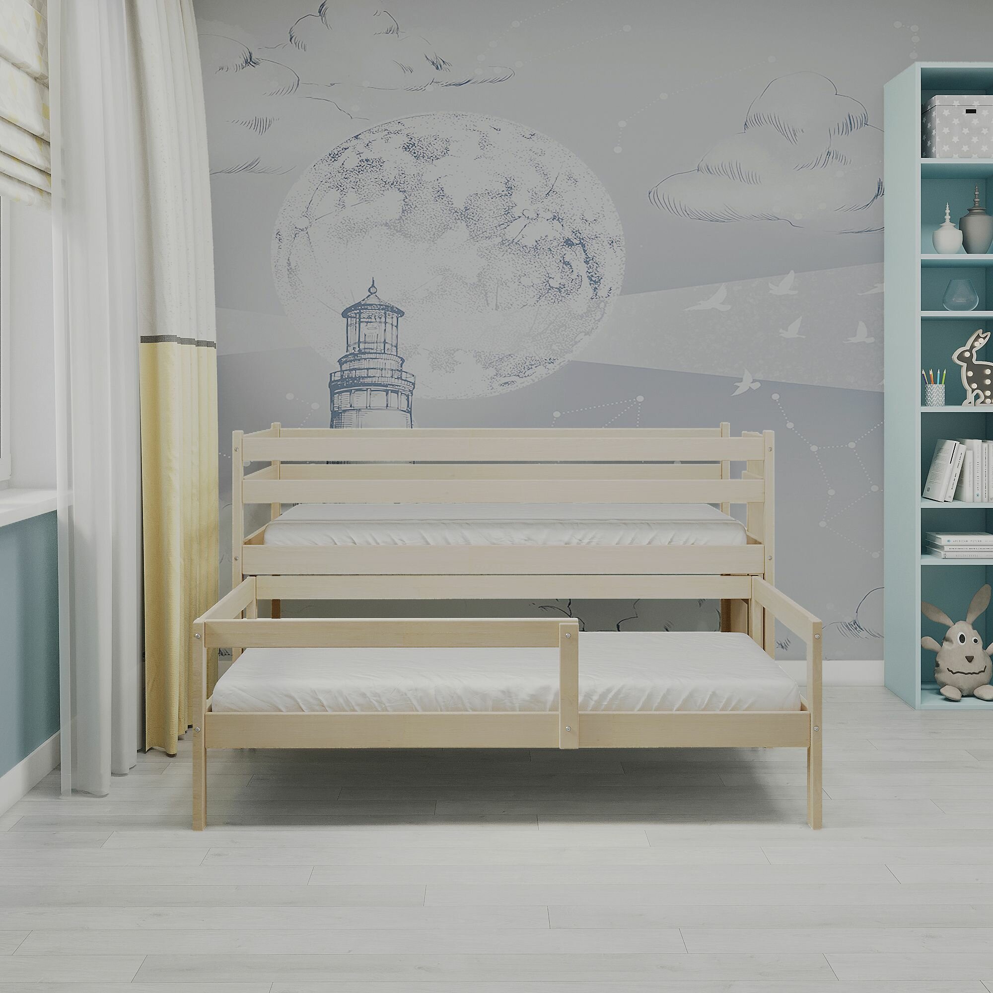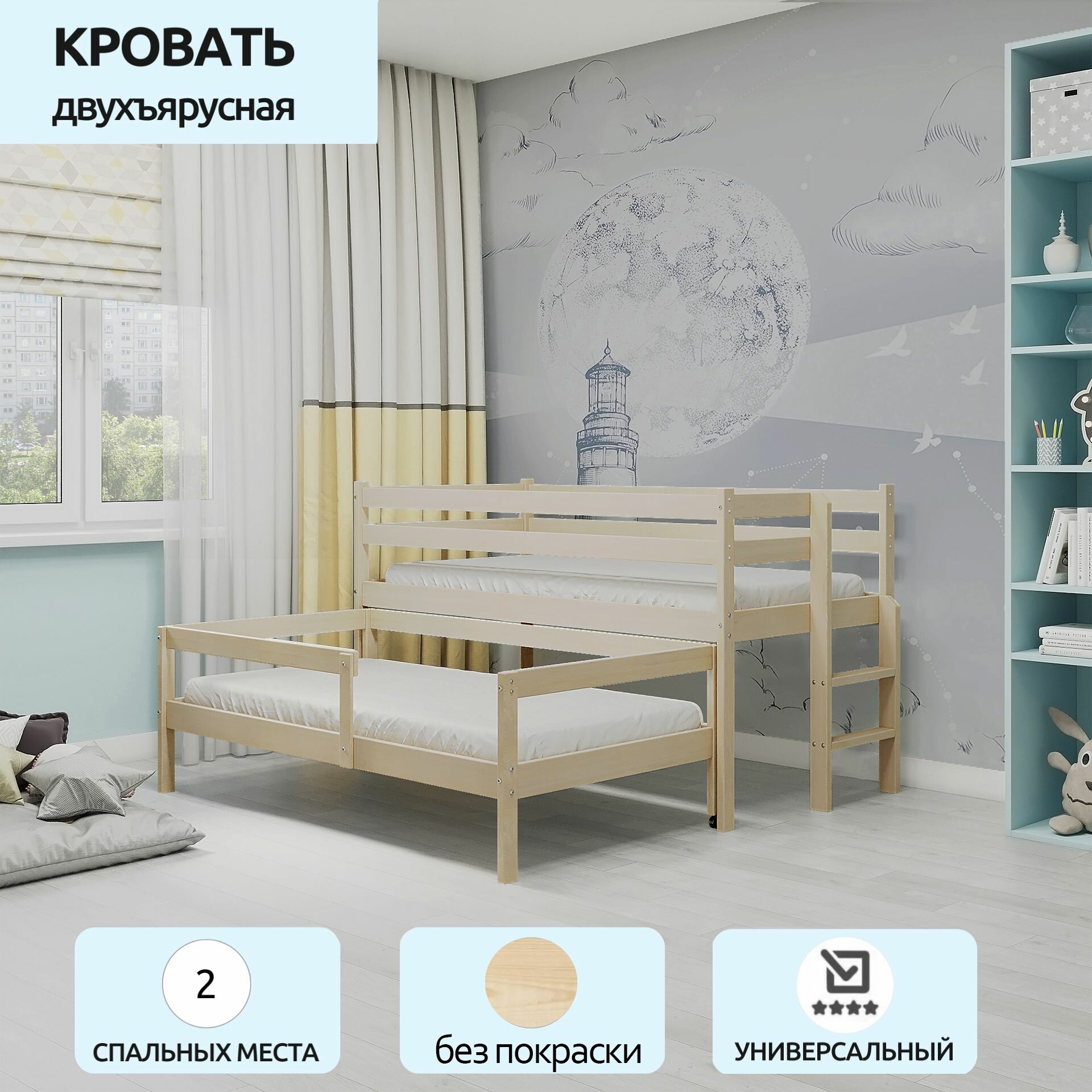Кровать выдвижная двухъярусная детская, для двоих детей, чистая береза, экологичная, 180*90/170*90