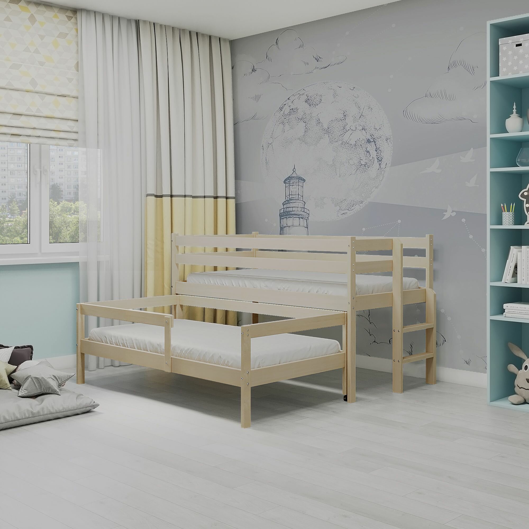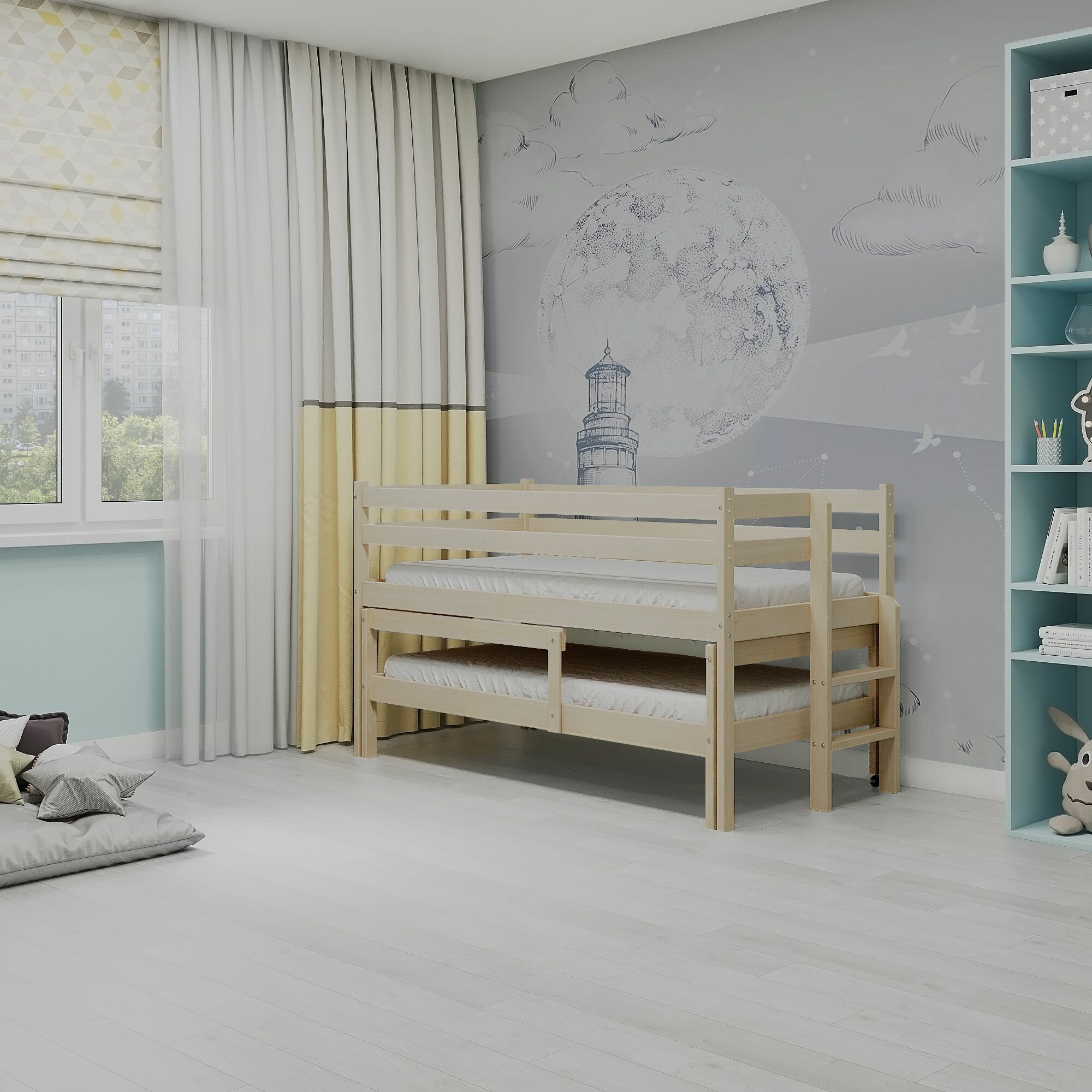 Кровать выдвижная двухъярусная детская