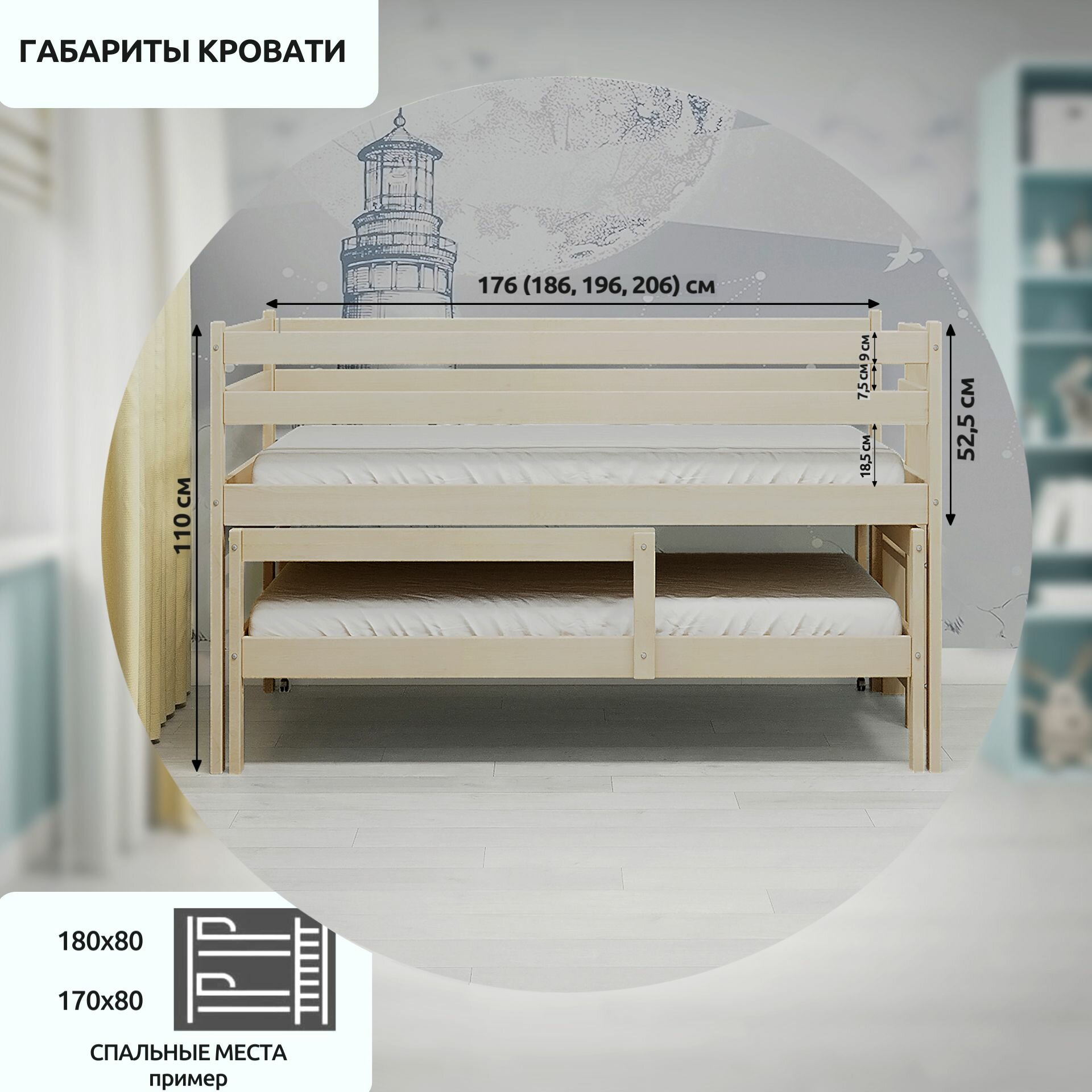 Кровать выдвижная двухъярусная детская/чистый массив березы/ верх 180*80, низ 170*80/с бортом/экологичная детская универсальная кровать