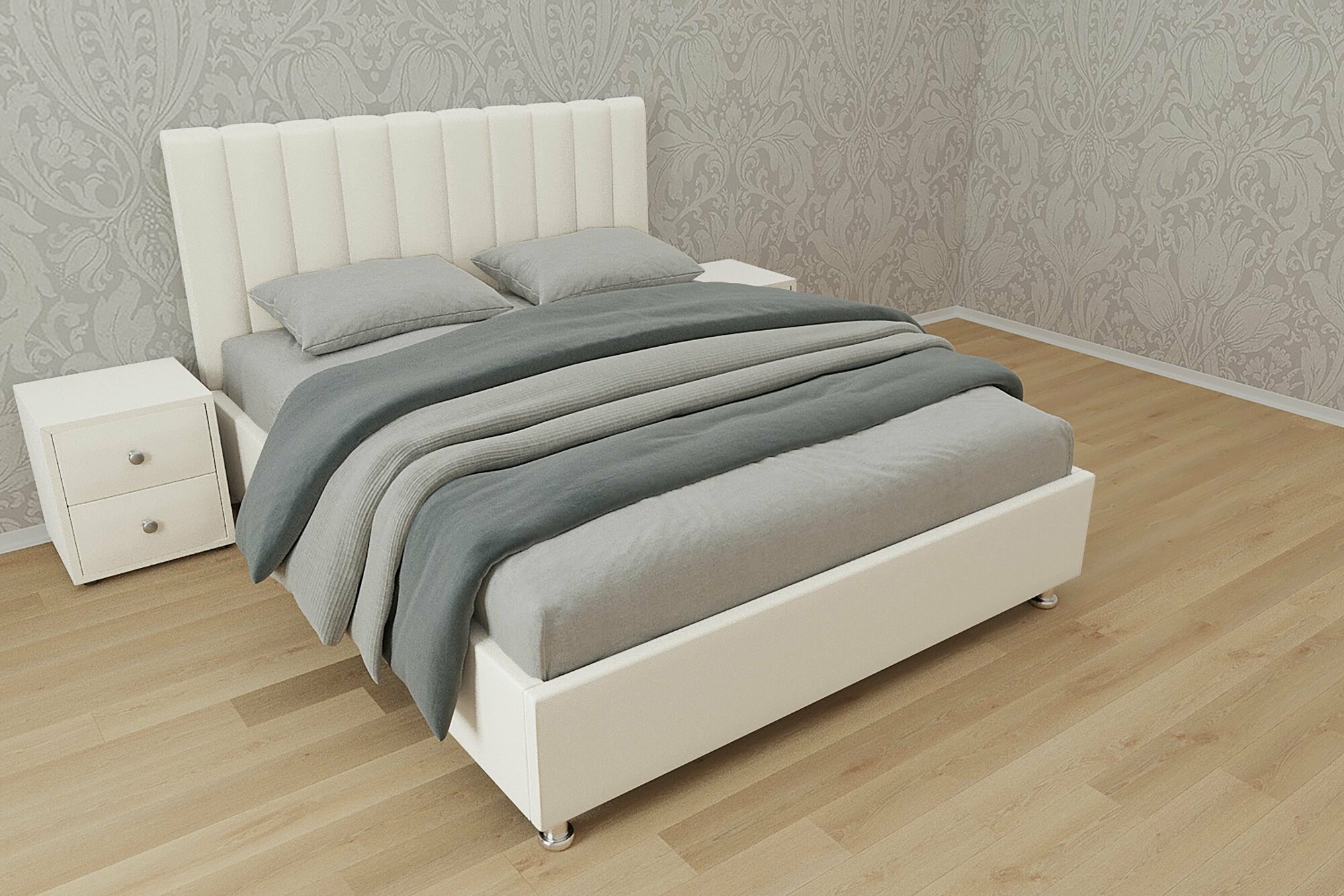 Двуспальная кровать Челси 180x200 с подъемным механизмом и с коробом для белья велюр белый ножки 13 см хром