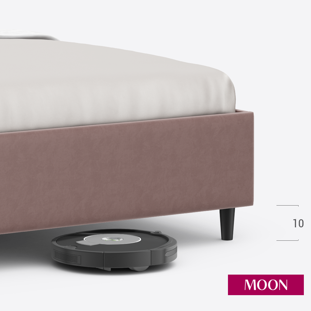 Кровать двуспальная с подъемным механизмом на ножках, MOON FAMILY 1258, размер 180х200 см, велюр розовый. Ортопедическое основание в комплекте