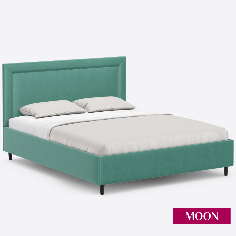 Кровать двуспальная с подъемным механизмом на ножках, MOON FAMILY 1258, размер 140х200 см, велюр светло-зеленый. Ортопедическое основание в комплекте
