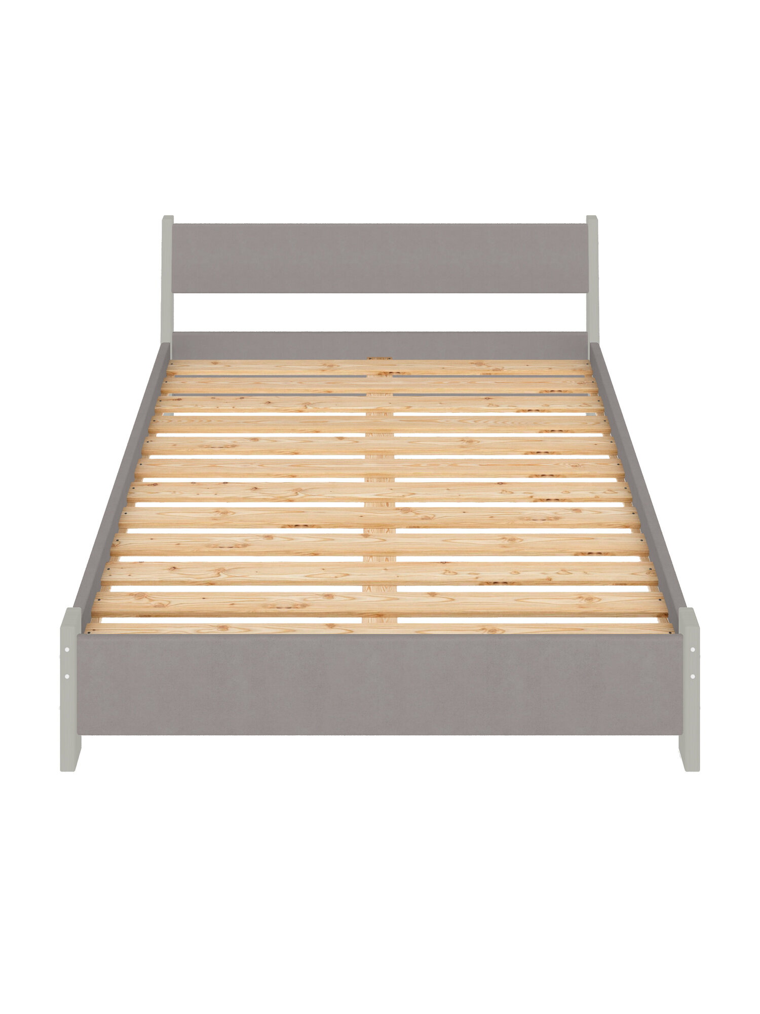 Кровать двуспальная Мишка из массива сосны, 120х200 см, с реечным основанием и темно-серой мягкой обивкой, ножки лакированные