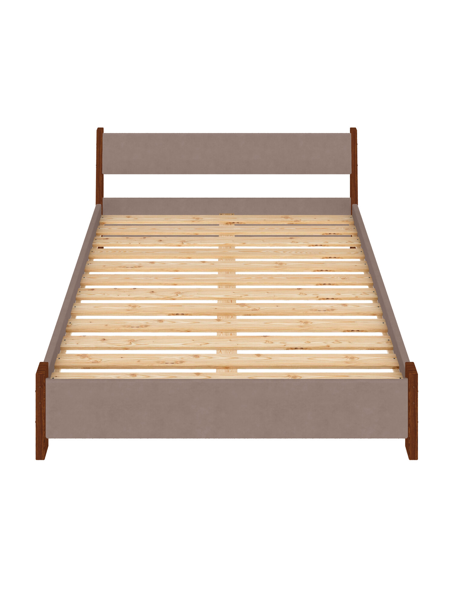 Кровать двуспальная Мишка из массива сосны, 120х200 см, с реечным основанием и светло-серой мягкой обивкой, цвет ножек темный дуб