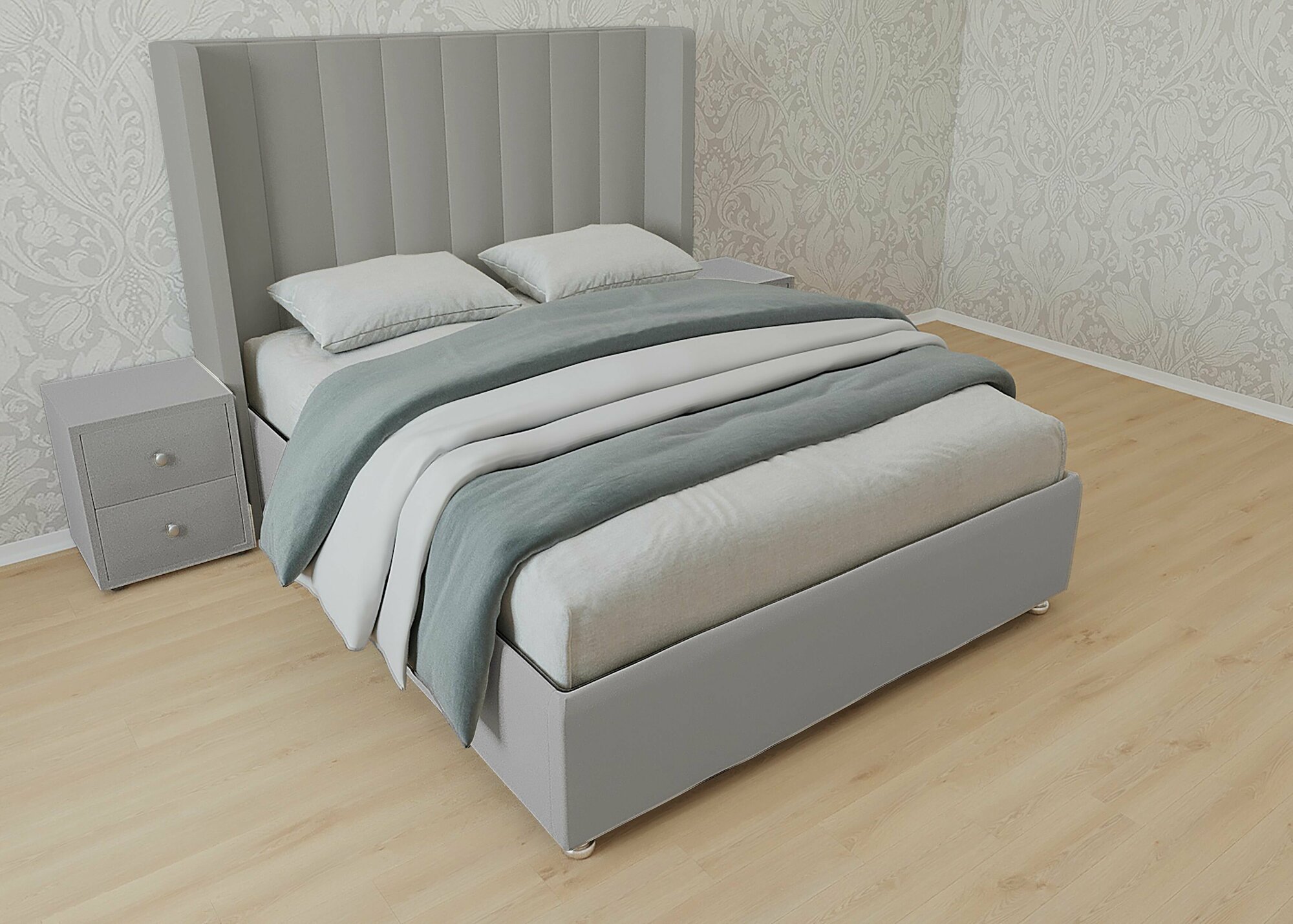 Двуспальная кровать Женева 180x200 с подъемным механизмом и с коробом для белья велюр серый ножки 5 см