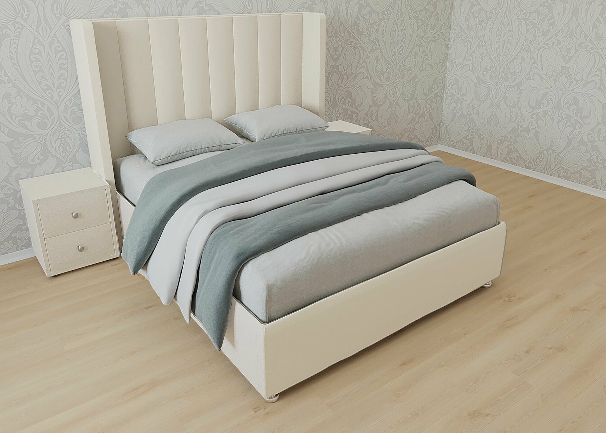 Полутороспальная кровать Женева 140x200 с подъемным механизмом и с коробом для белья велюр бежевый без ножек