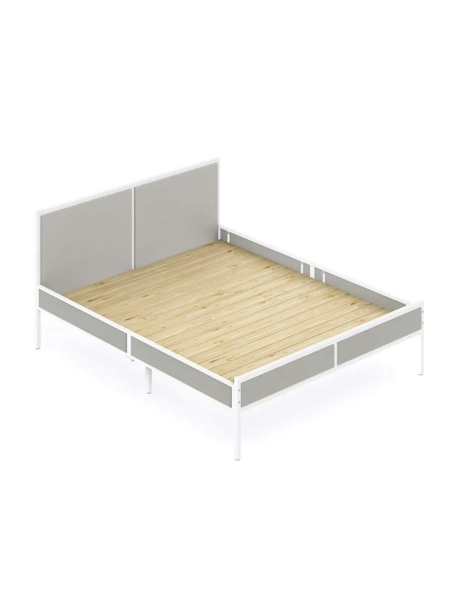 Кровать двуспальная Лофт со сплошным основанием, цвет платины с белым металлическим каркасом, 140х200 см