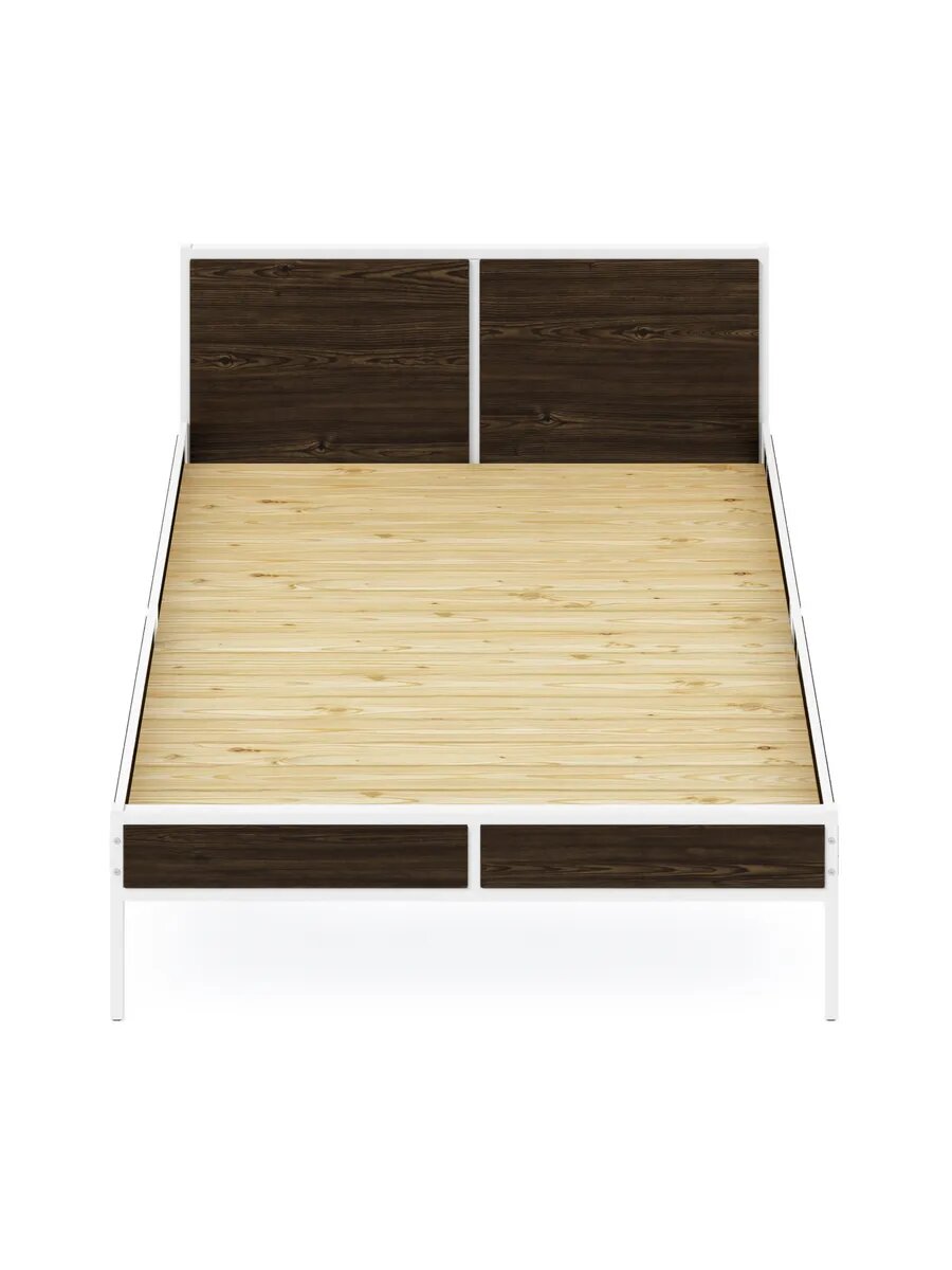 Кровать двуспальная Лофт со сплошным основанием, цвет темного дуба с белым металлическим каркасом, 120х200 см