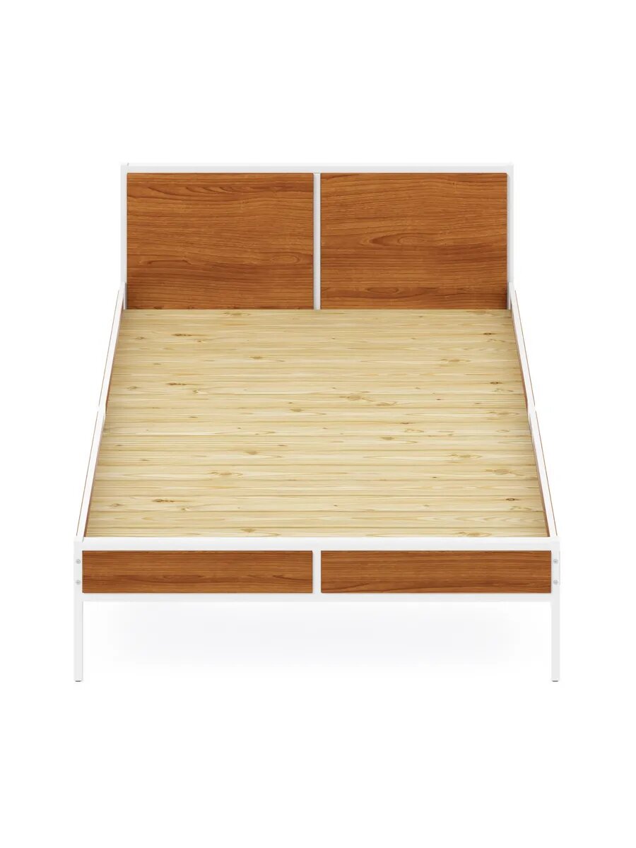 Кровать двуспальная Лофт со сплошным основанием, лакированная с белым металлическим каркасом, 120х200 см