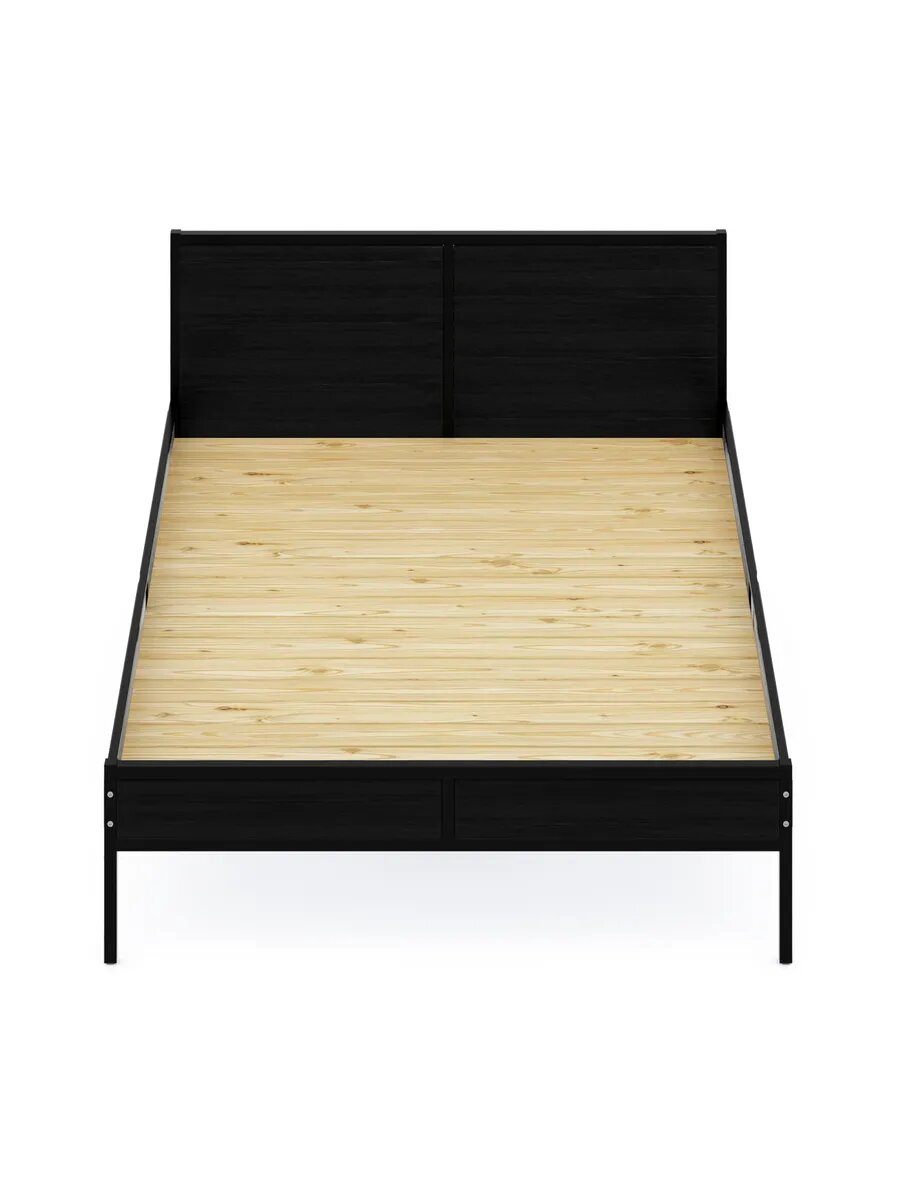 Кровать двуспальная Лофт со сплошным основанием, цвет черного оникса с черным металлическим каркасом, 140х200 см
