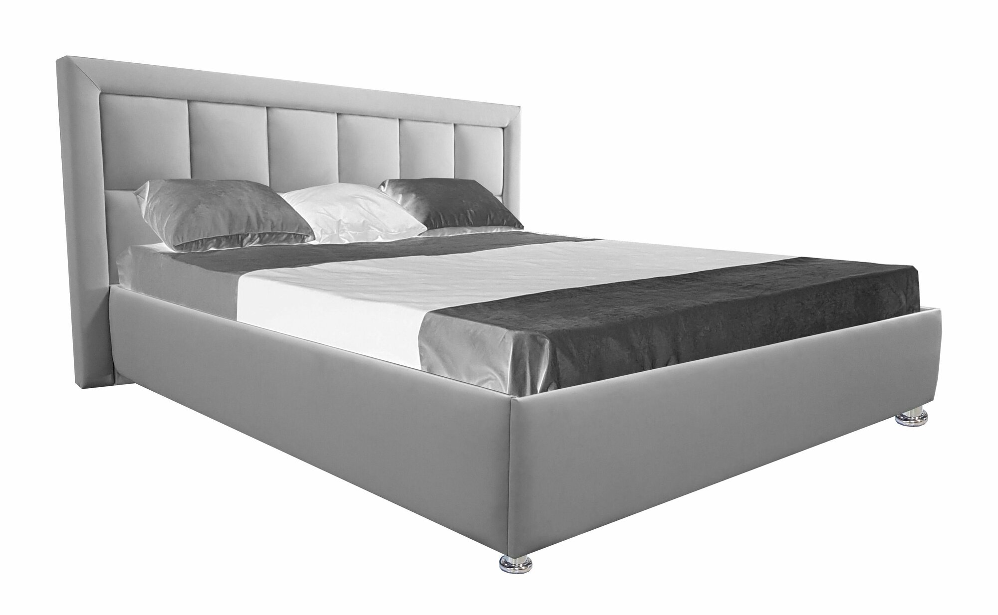 Двуспальная кровать Флорида 160x200 с подъемным механизмом и с коробом для белья велюр серый ножки 13 см хром