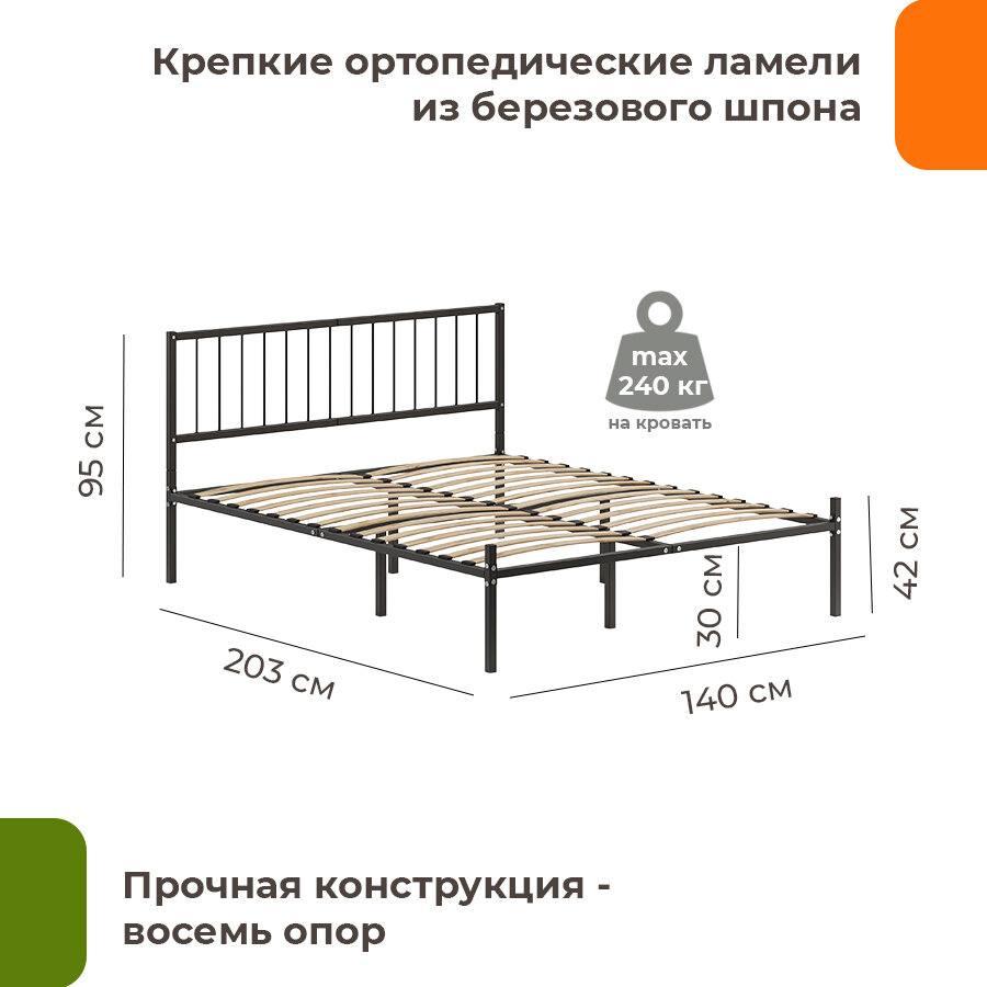 Кровать металлическая Металика Г4 140х200 черная с держателями для матраса и доп. опорами