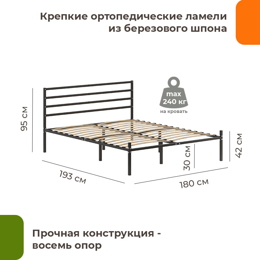 СохранитьКровать металлическая Металика Г4 180х190 черная с держателями для матраса и доп. опорами интересное:
