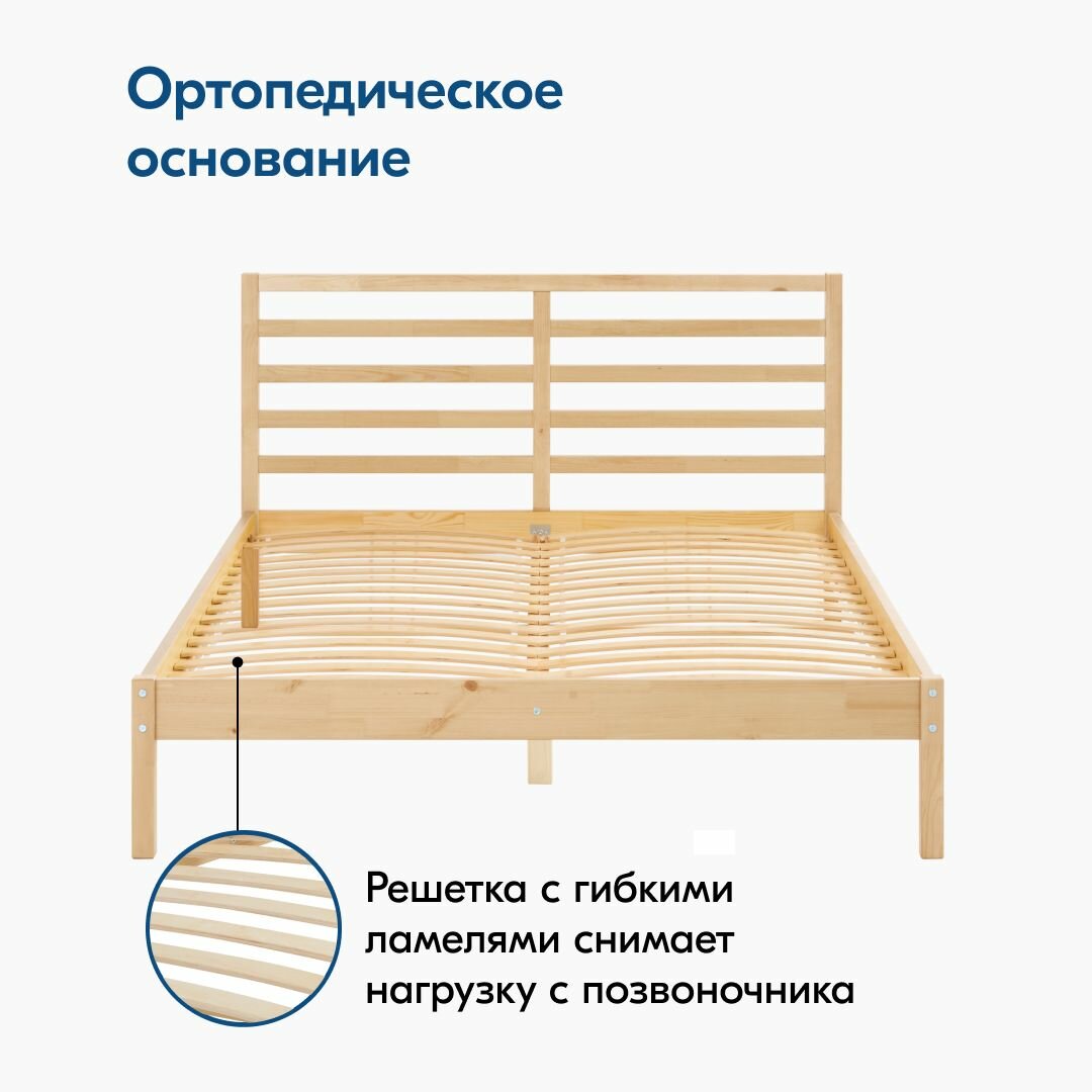 Кровать ТИРАНА двуспальная 140x200, ортопедическое основание, натуральный