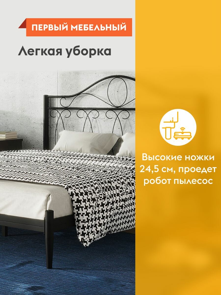 Кровать двуспальная Лекси 140х200 см, с анатомическим основанием, без подъемного механизма, без изножья, Черный, металл