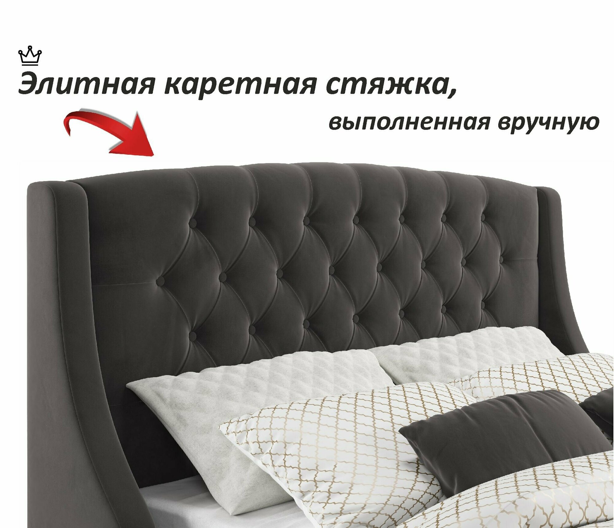 Двуспальная кровать Stefani 1600 темная Zeppelin с ортопедическим основанием, 160х200, мягкая из велюра, ламели