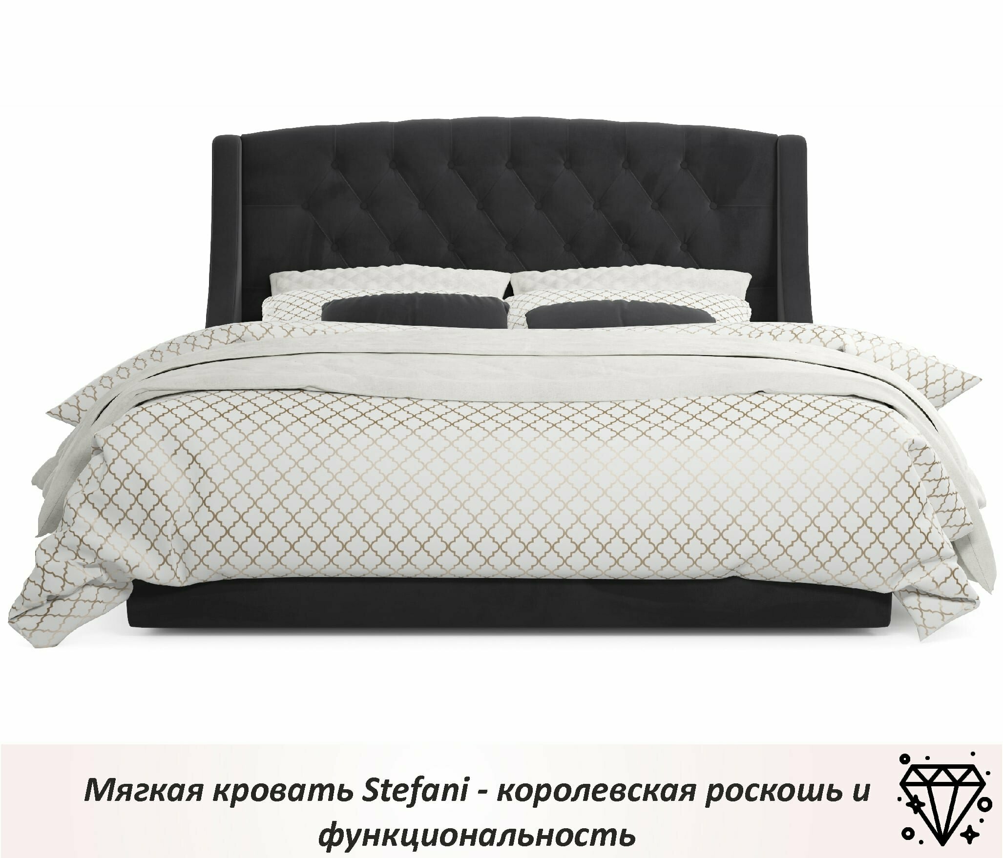 СохранитьДвуспальная кровать Stefani 1600 темная Zeppelin с ортопедическим основанием, 160х200, мягкая из велюра, ламели интересное: