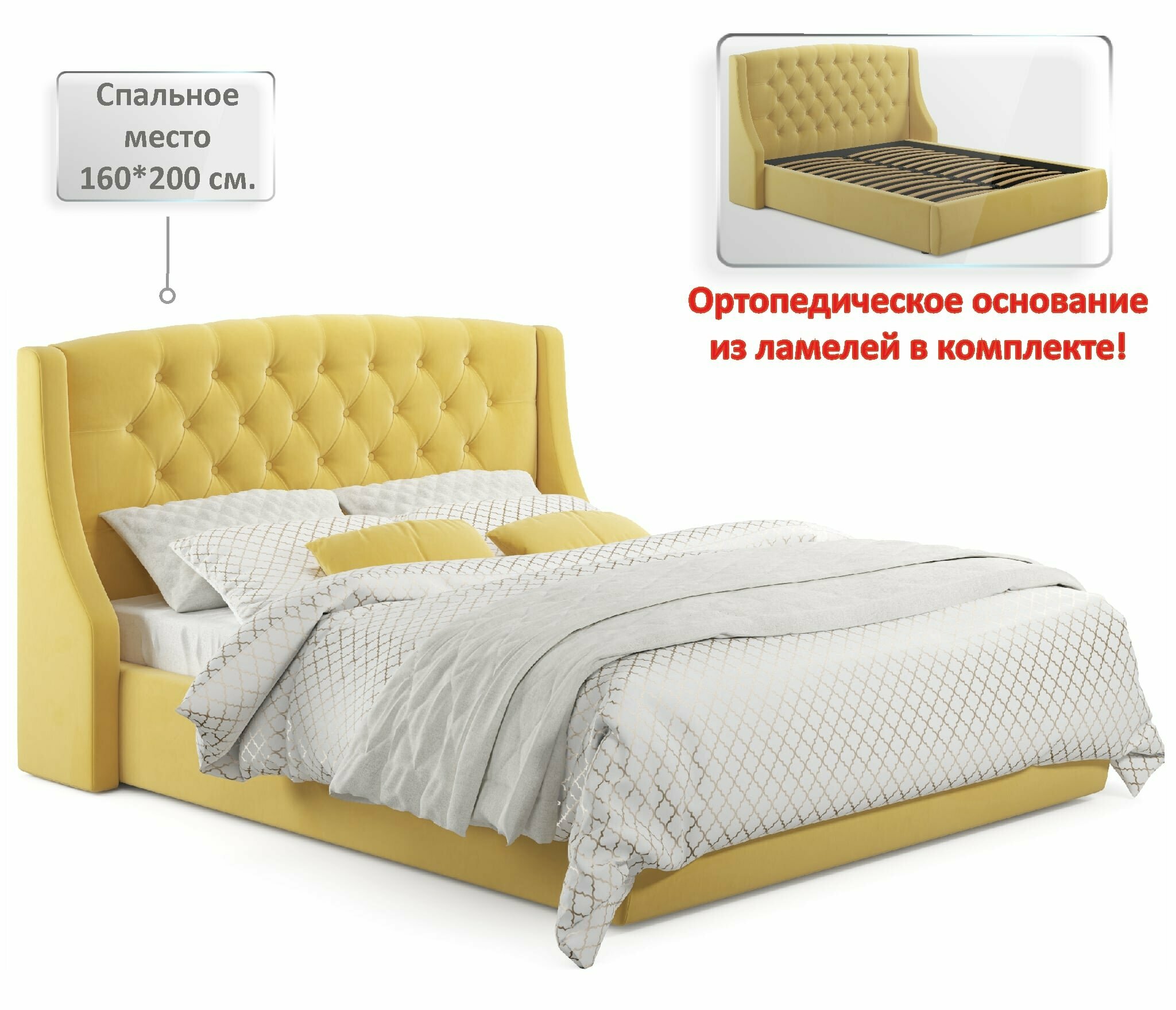 Купить Двуспальная кровать Stefani 1600 желтая Zeppelin с ортопедическим основанием, 160х200, мягкая из велюра, ламели