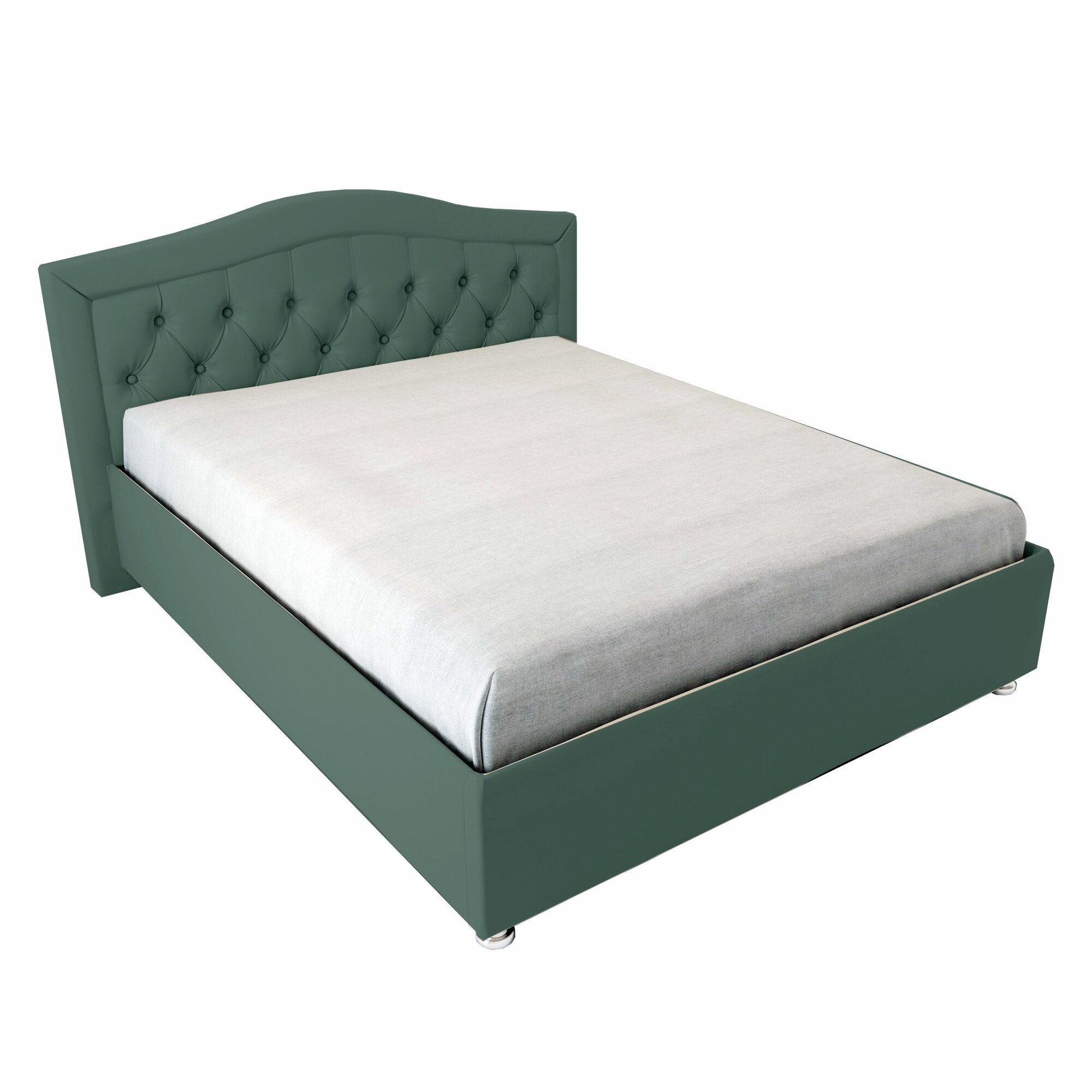 Двуспальная кровать Бермуды 160x200 основание металлическое с ламелями велюр зеленый ножки 5 см