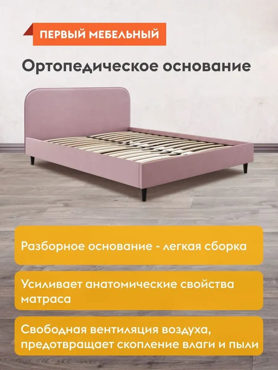 Кровать двуспальная Эни 160х200 см, деревянная, с анатомическим основанием, Пудровый, велюр