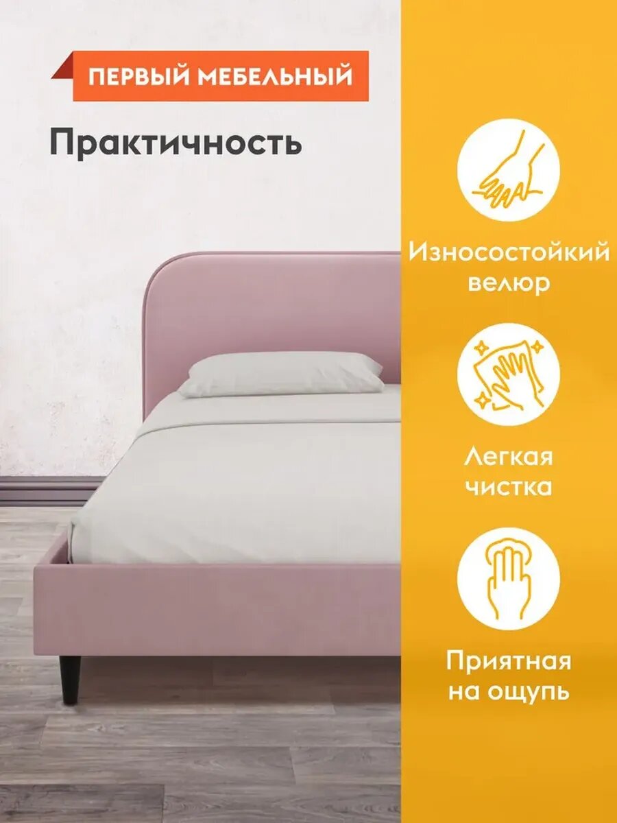 СохранитьОдноспальная кровать Эни 120х200 см, деревянная, с анатомическим основанием, Пудровый, велюр интересное:
